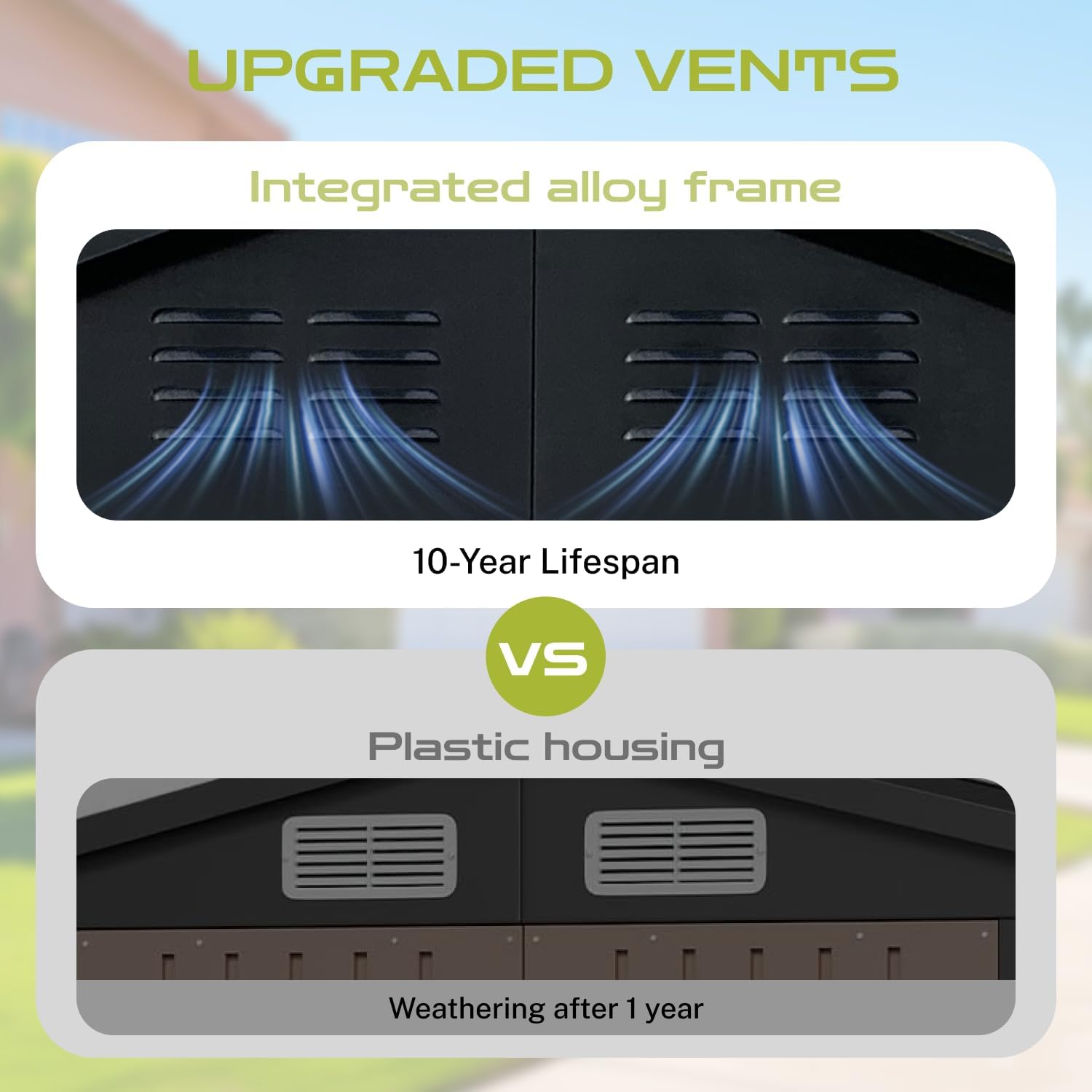 - 【Ultra-Durable for Harsh Climates】Constructed with 24/34-gauge galvanized steel, this weatherproof garden shed resists rust, 6 Beaufort winds (24-30mph), and heavy snow, ensuring a 10-year lifespan in coastal or snowy regions