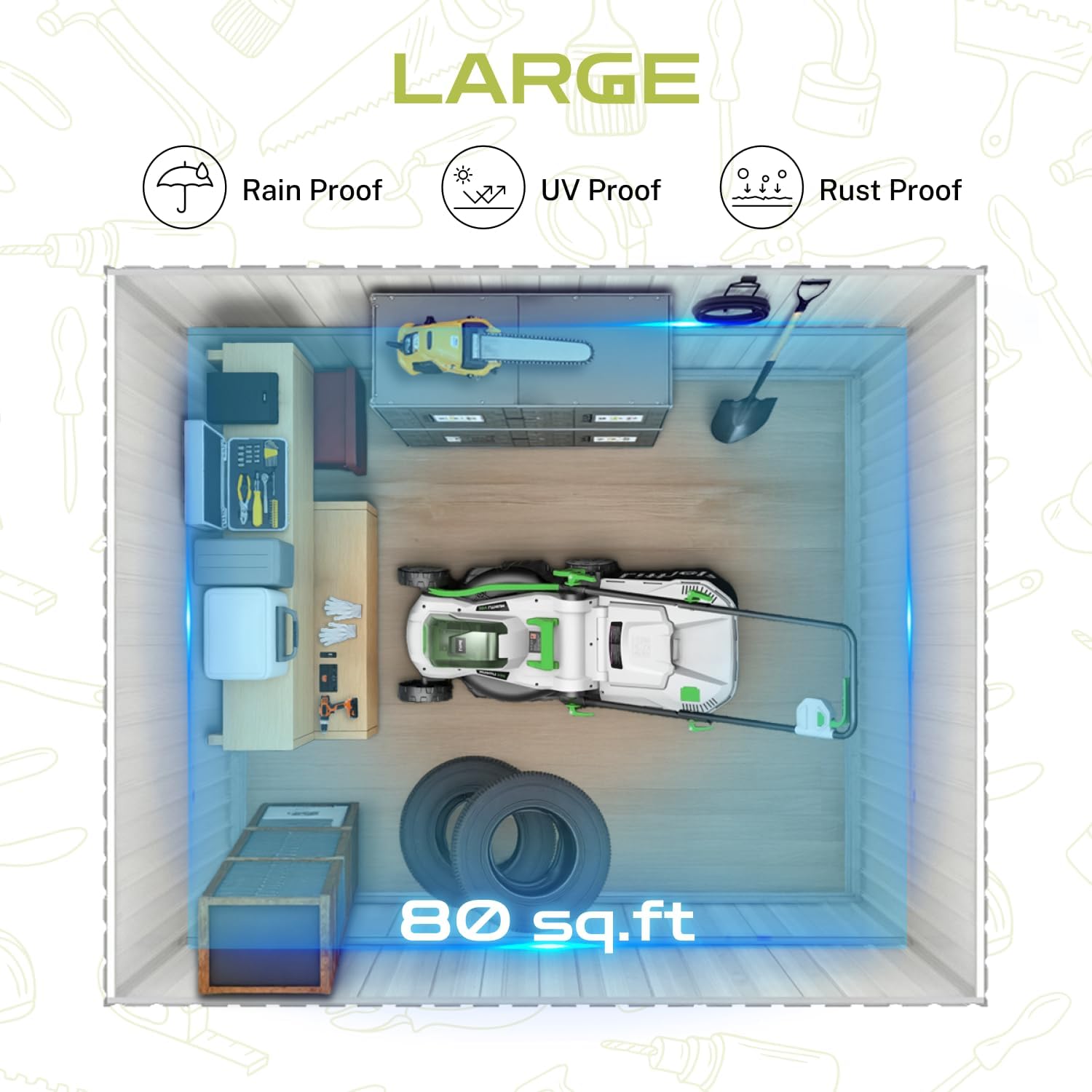 - 【Spacious & Multi-Functional】This 80 sq.ft outdoor storage shed offers versatile space for gardening tools, seasonal gear, or as a compact workshop, featuring 4 vents to prevent humidity damage