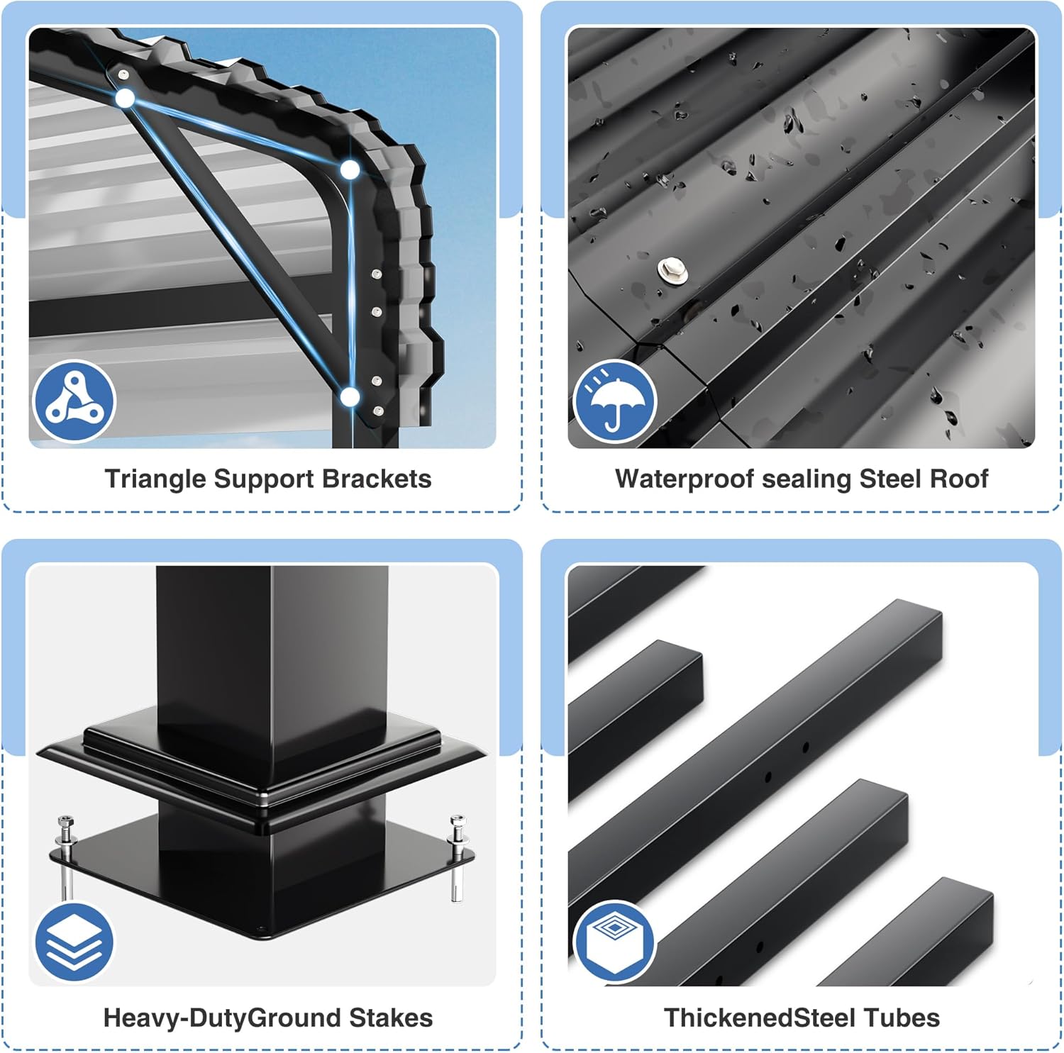 - 【Unique Design】 Improvements to the metal carport include the installation of waterproof seals and durable rubber edges on the roof to minimize the risk of injury, emphasizing our focus on your safety and the durability of the carport.