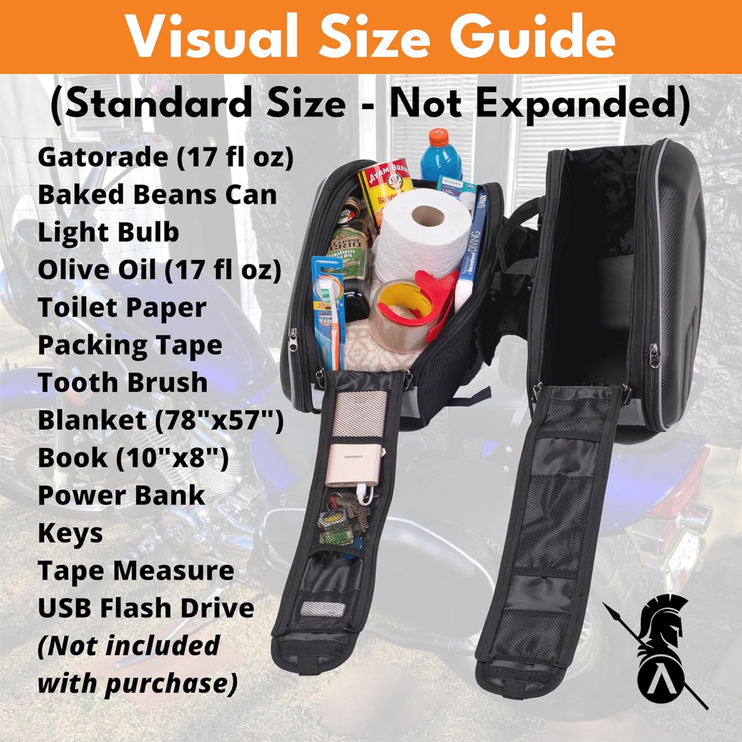 - DETACHABLE AND PORTABLE: With quick-release buckles and a carry handle, these saddlebags are easily detachable and can be used independently of your motorcycle, doubling as portable luggage.