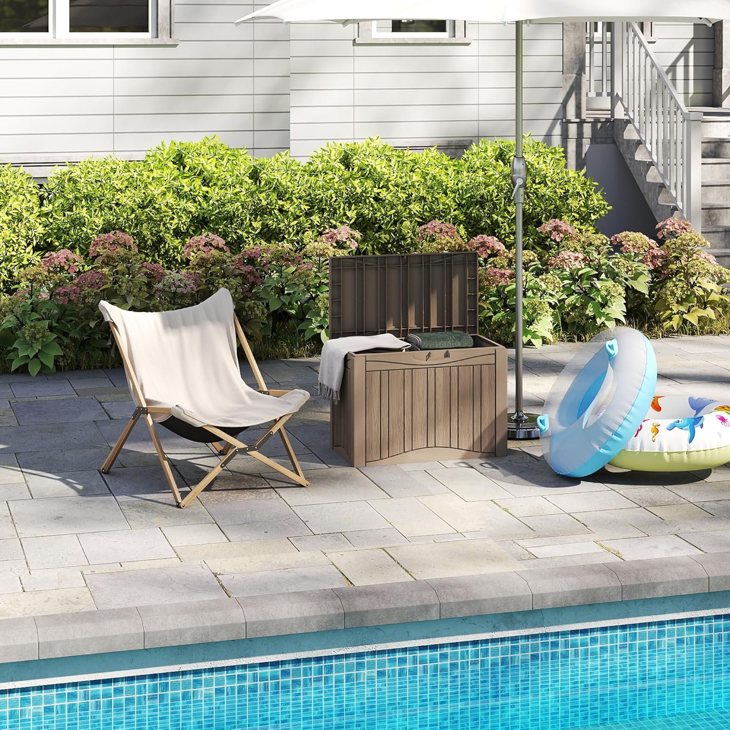- Wide Range of Use: With a capacity of 50 gallons, this storage box can also be used as a patio seat, storage bench or footstool, whether it's family party supplies, camping equipment, gardening tools.