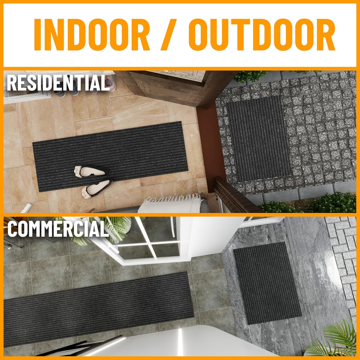 Ottomanson Mud Mat 2' x 2' Entryway Rug - Non-Slip Scraper Doormat for Muddy Paws, Dirt Trapping Indoor/Outdoor Mat for High-Traffic Areas, Kitchen, Garage, Patio, Black