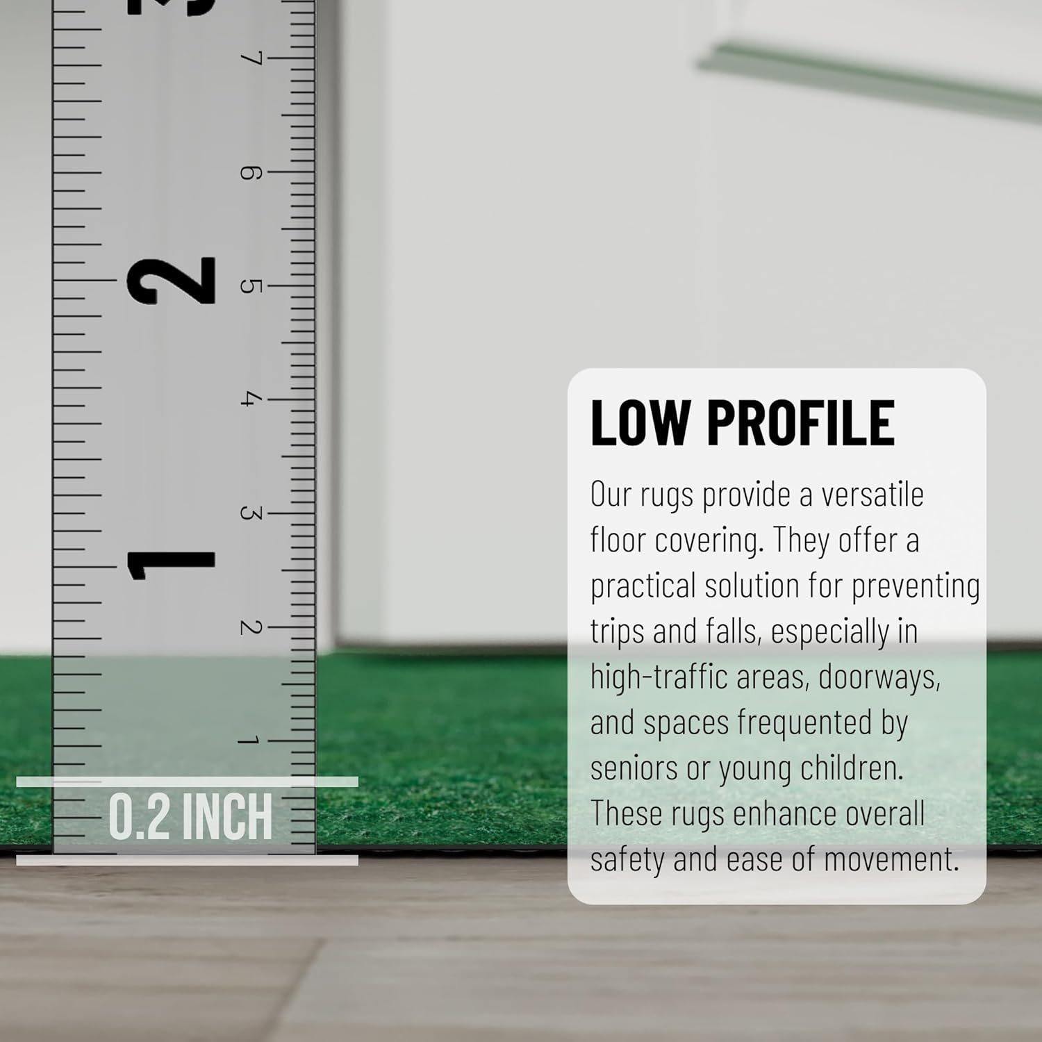 - [ULTRA THIN PILE]: An ultra thin pile thickness of 0.2 inches offers ideal functionality that is perfect for busy areas, underneath furniture, and in entryways as it will not obstruct doorways.