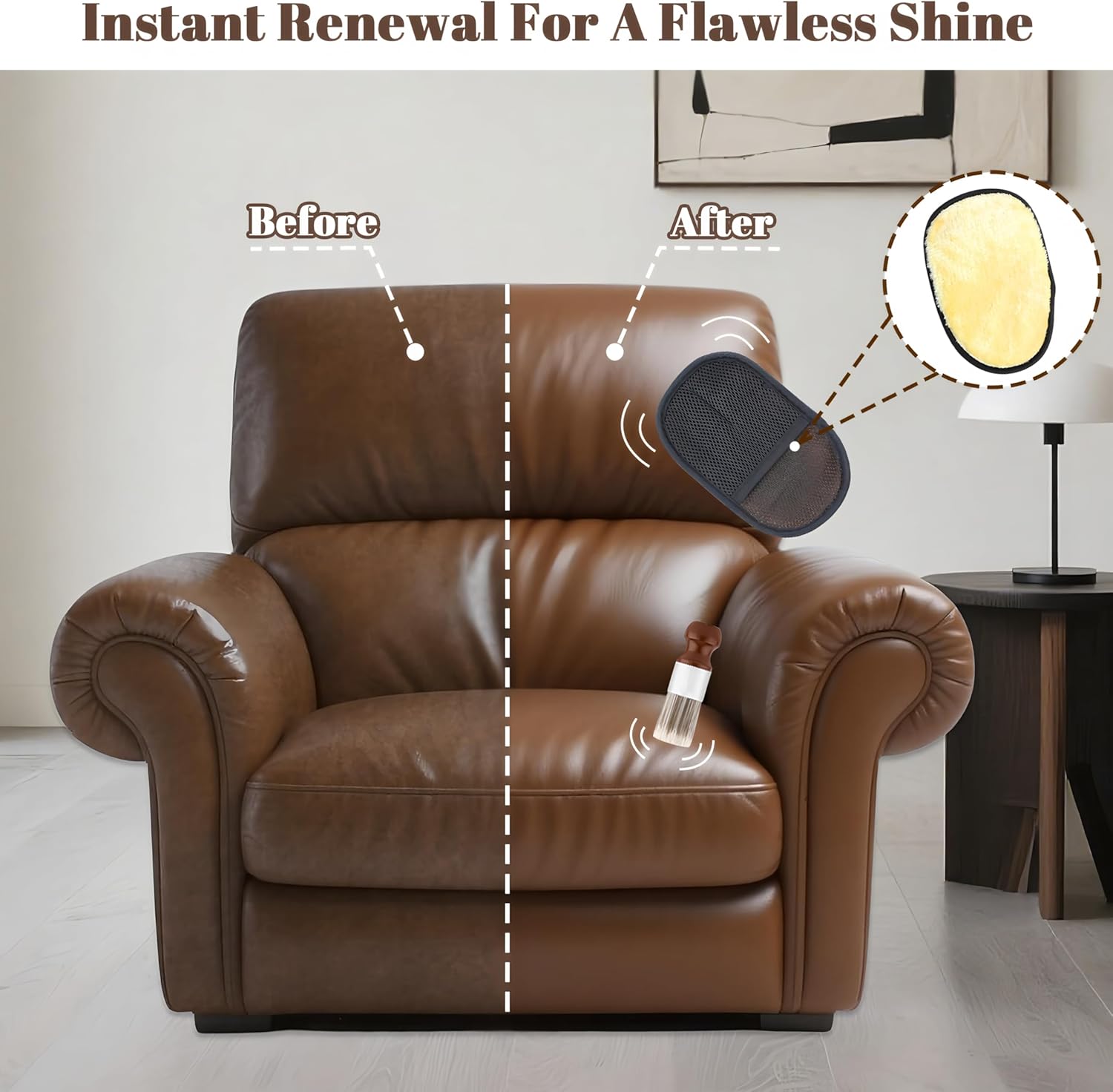 - 【Leather Repair Kit for Furniture】Our salve brush is made of great quality metal, wood and high-quality boar bristle, which are durable, sturdy, with a gentle touch and fine texture, not easy to scratch or damage. And the towel made of imitation wool. They can ensures smooth, lint-free application, effectively clean and nourish your leather furniture for perfect results every time