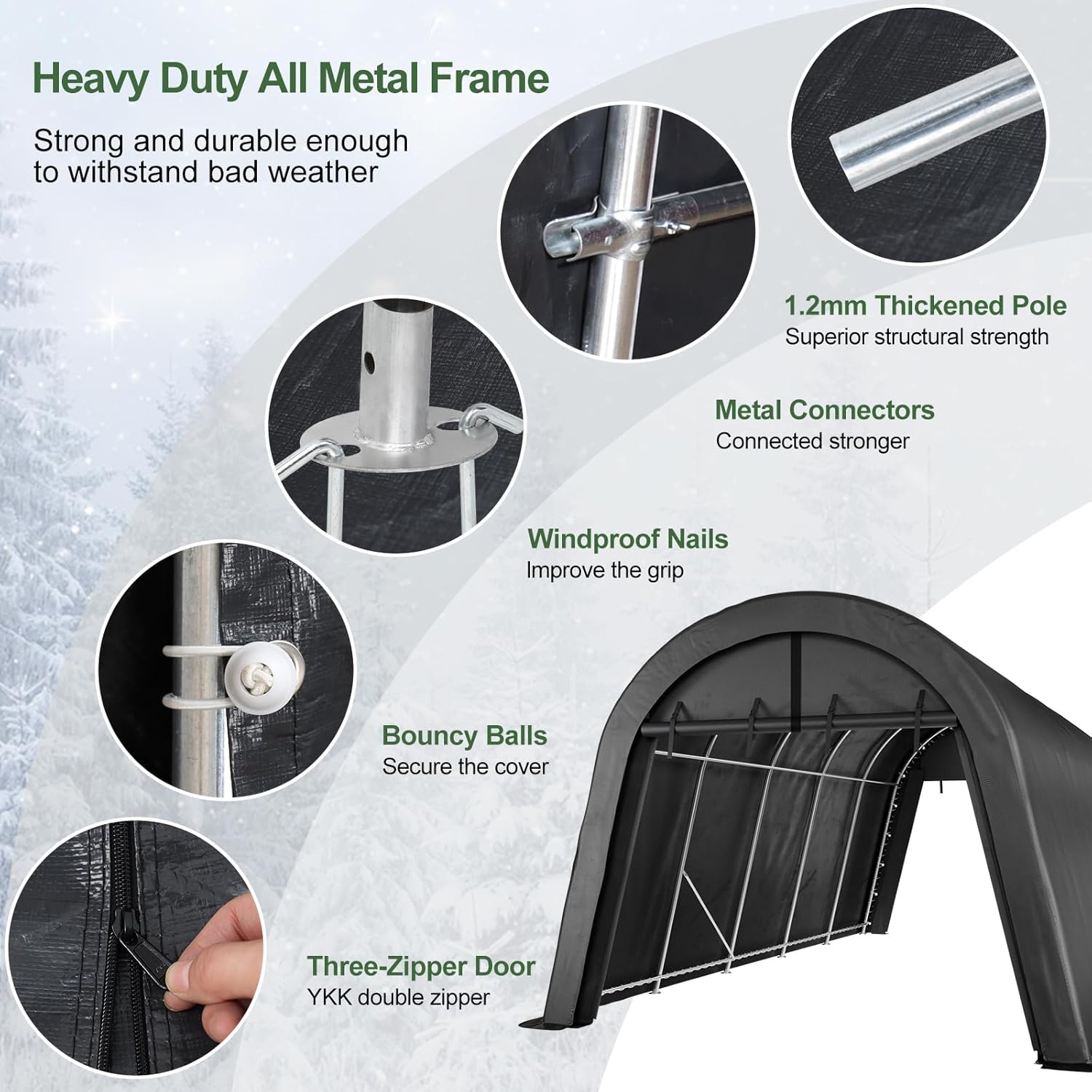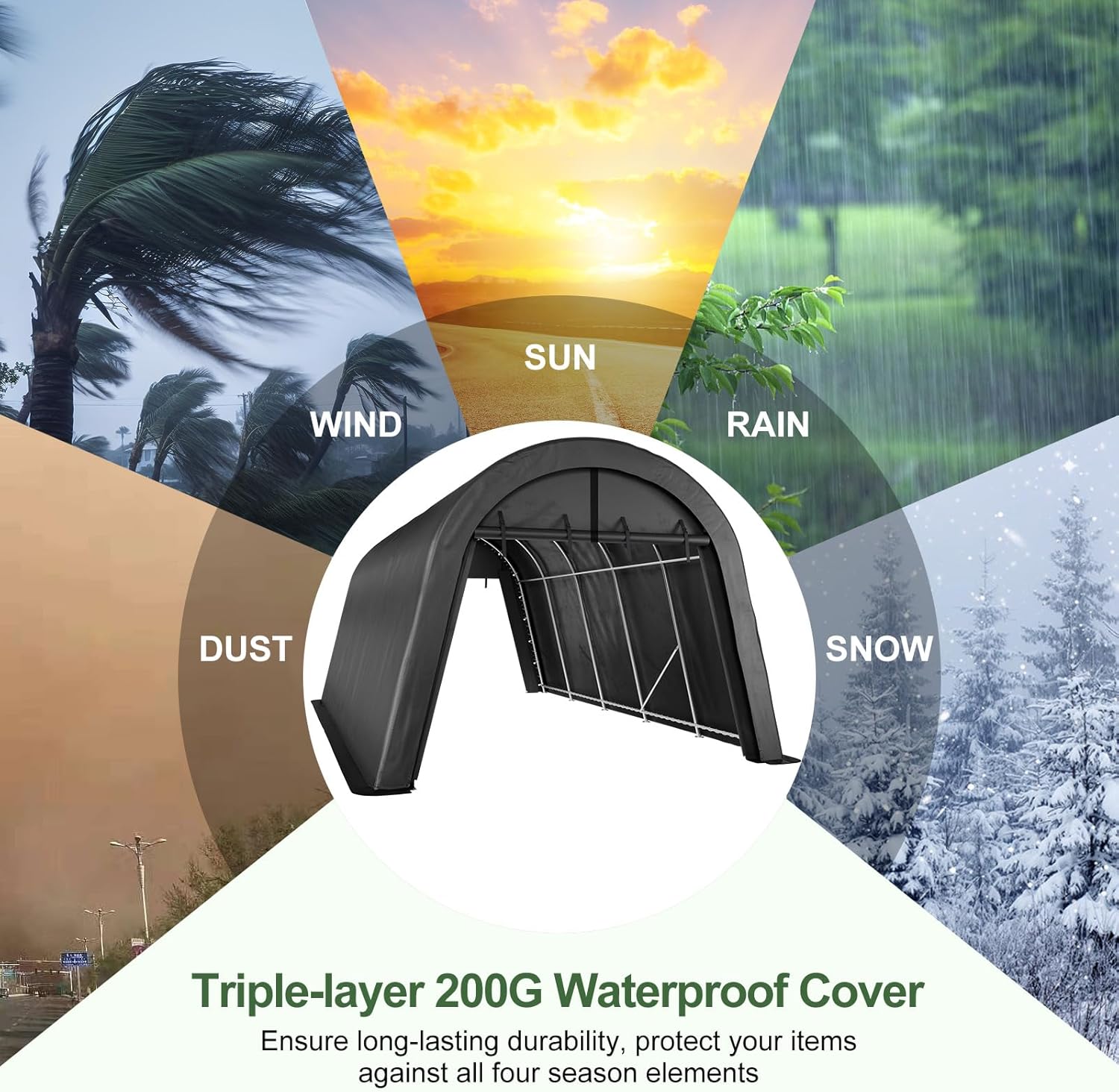 - 【Removable Double-Zipper Doors,Easy Access & Ventilation】Our car shed featuring double zippers and buckles, the doors of our portable shed can be easily removed or rolled up for convenient entry and exit and improved air circulation.You can assemble the roll-ups in the winter to keep the cold, or remove it in the summer to enhance the ventilation