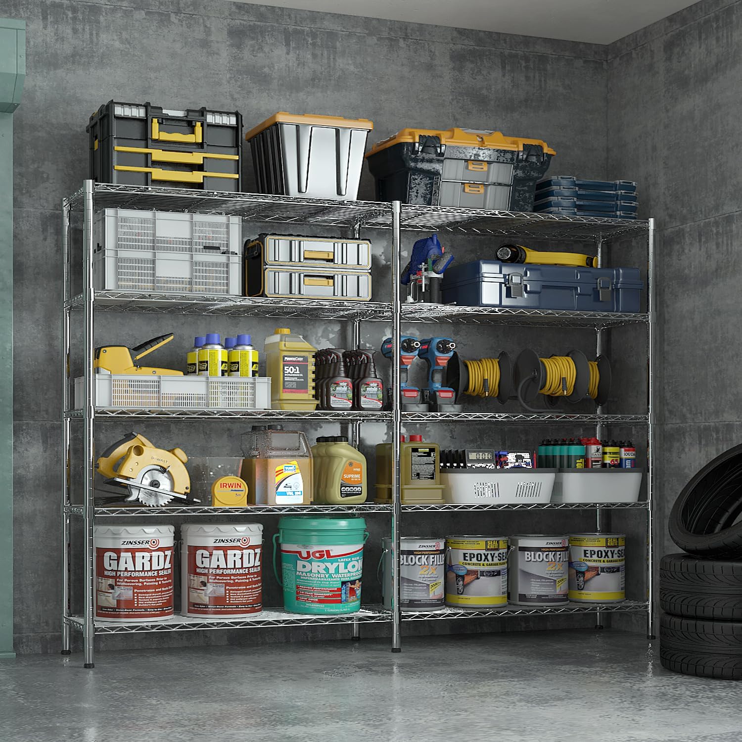 VINGLI 70" W Storage Shelves 1600LBS Heavy Duty Metal Shelving, Upgraded 5 Tier Garage Shelving Unit, Adjustable Wire Shelf for Storage Rack Commercial Pantry Shelf Organizer, 69.8"W × 15.8"D × 71"H