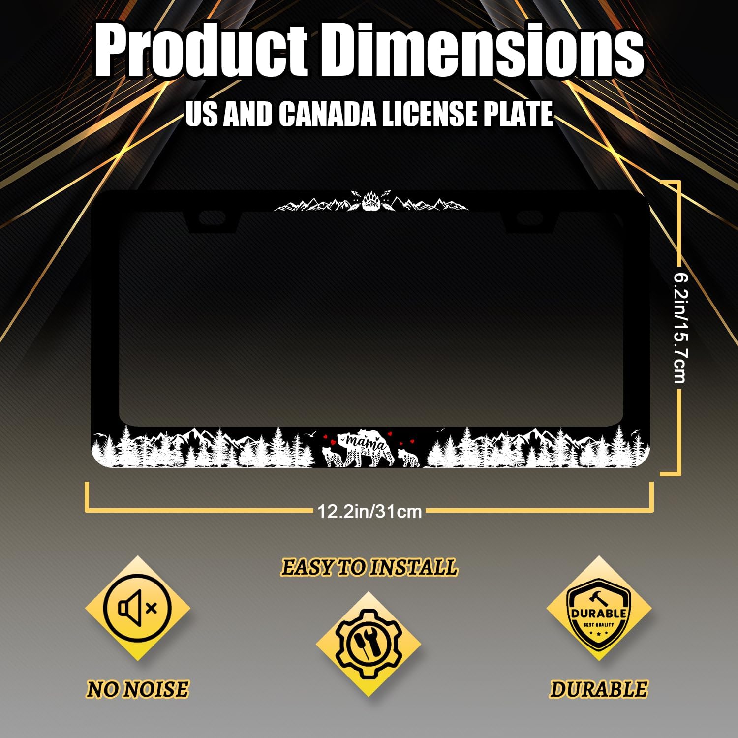 - Size: 12.2" x 6.2" , it fits all standard size US vehicle license plates.With compatibility, the stylish design frame fits on your car license plate.