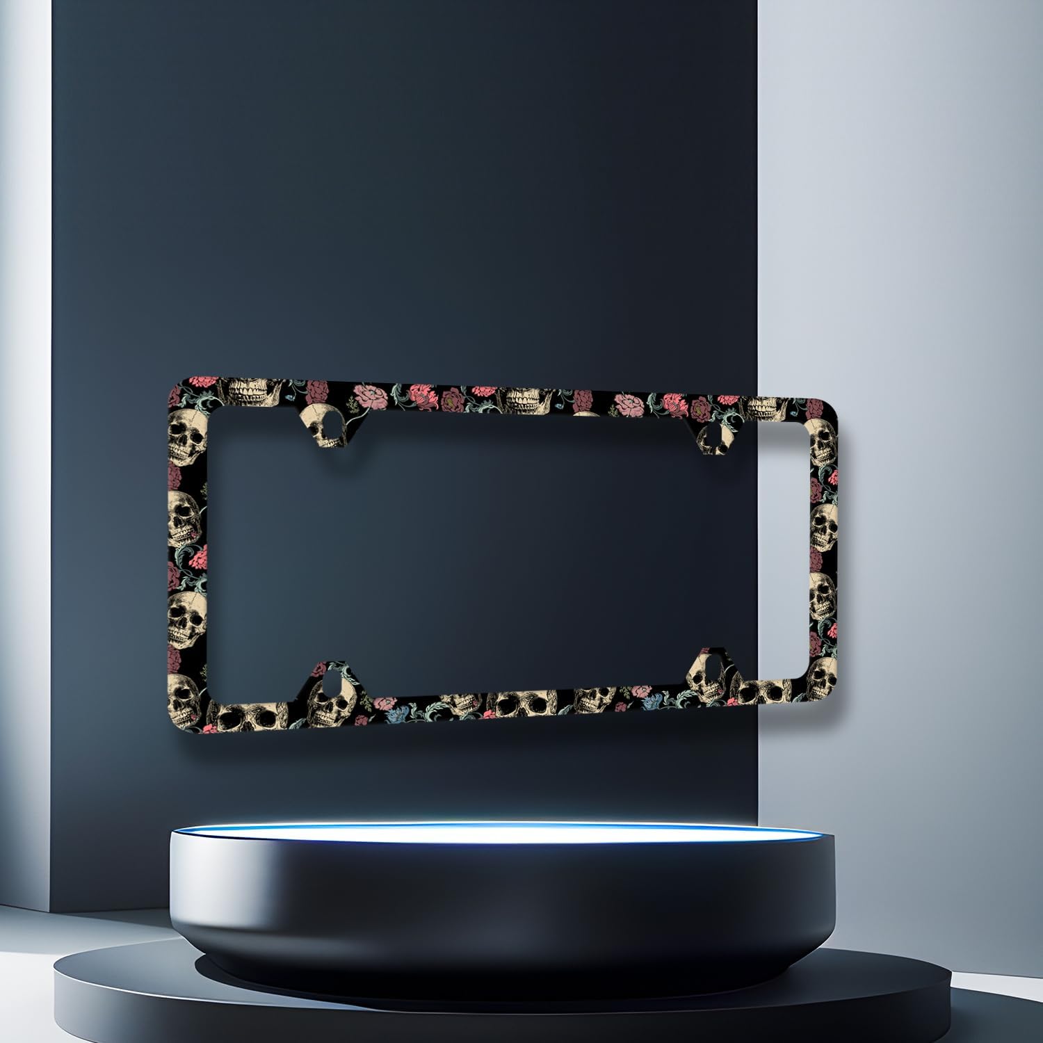 Skulls Flowers License Plate Frame Colorful Skull License Plate Stainless Steel Funny Accessories Cars Decor 12.2 X 6.2 Inch with 4 Holes and Screws Fits Standard Us Ca Vehicles