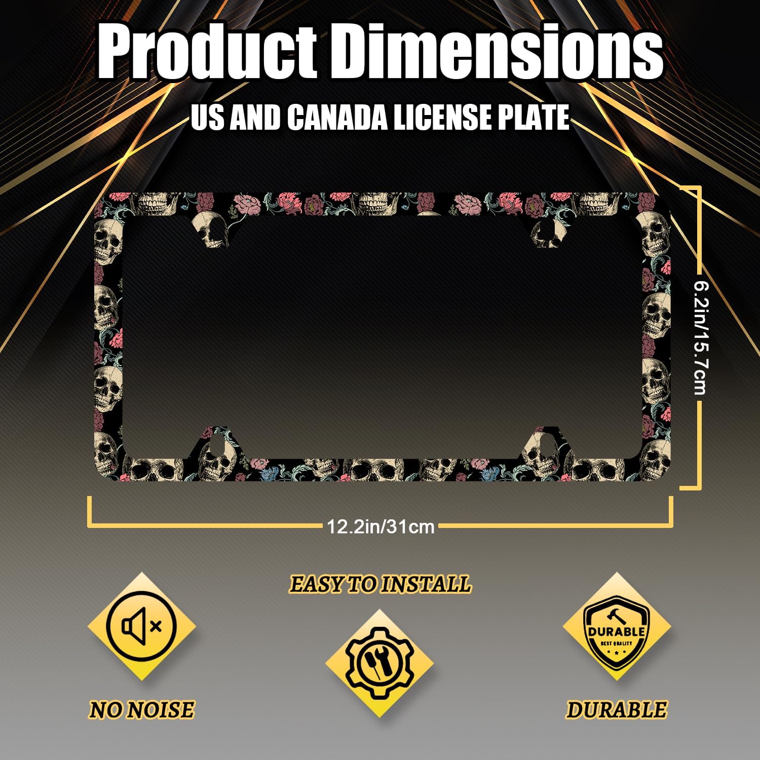 - Size: 12.2" x 6.2" , it fits all standard size US vehicle license plates.With compatibility, the stylish design frame fits on your car license plate.