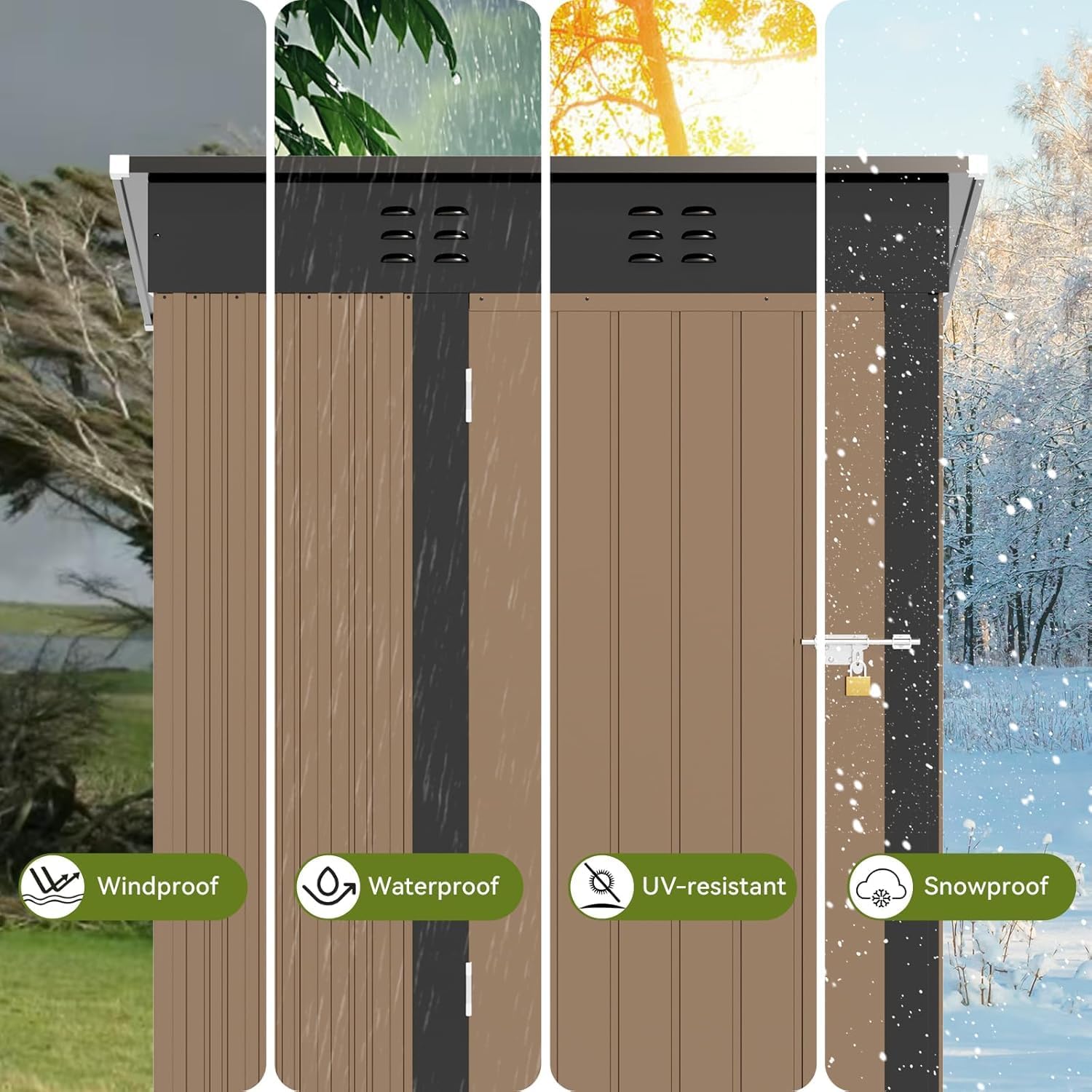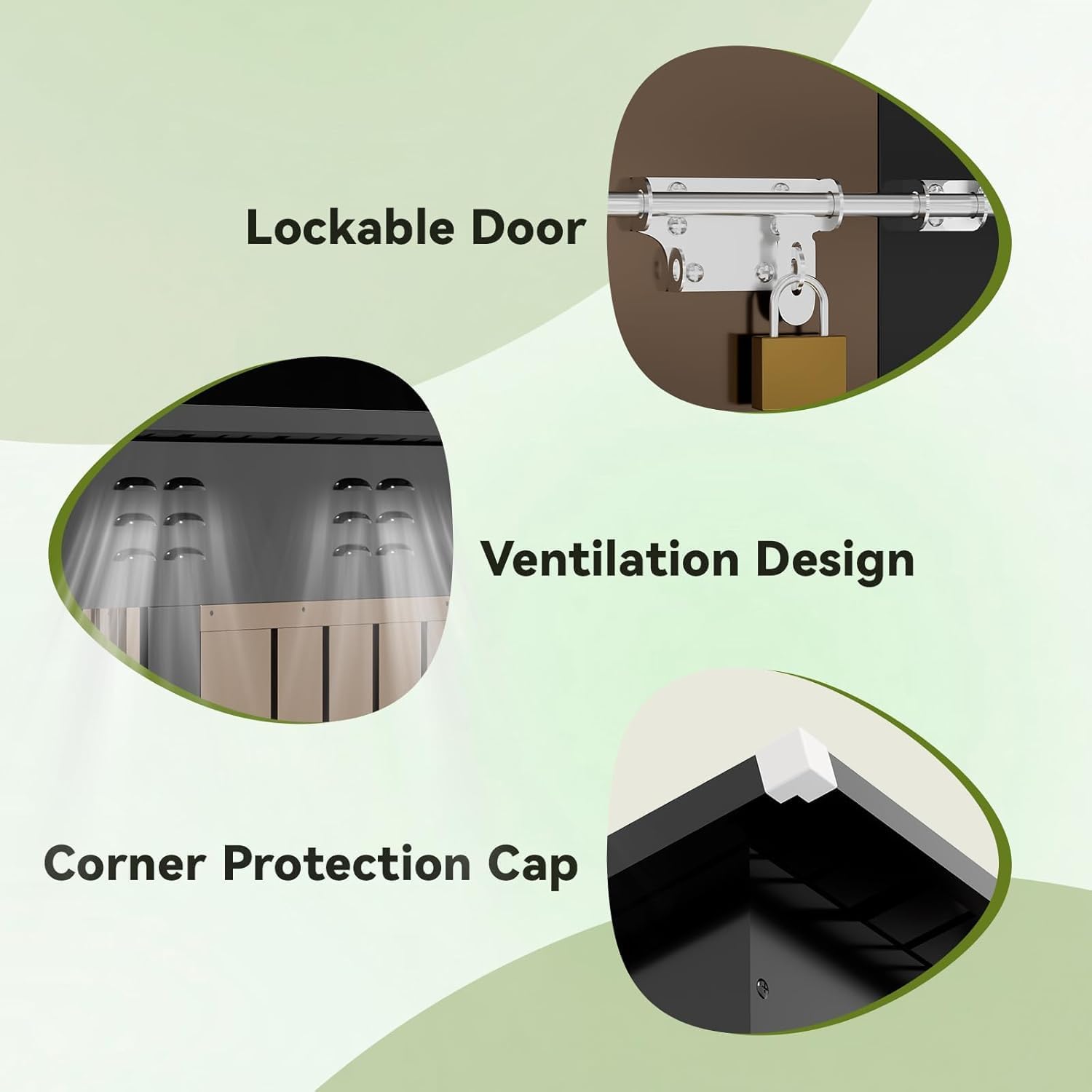 - Lockable Door and Vents:The lockable door provides security,keeps your tools away from being stolen,and avoids small animals from entering accidently;Two Top Vents for Better Airflow,Keeping the Space Cool and Odor-Free