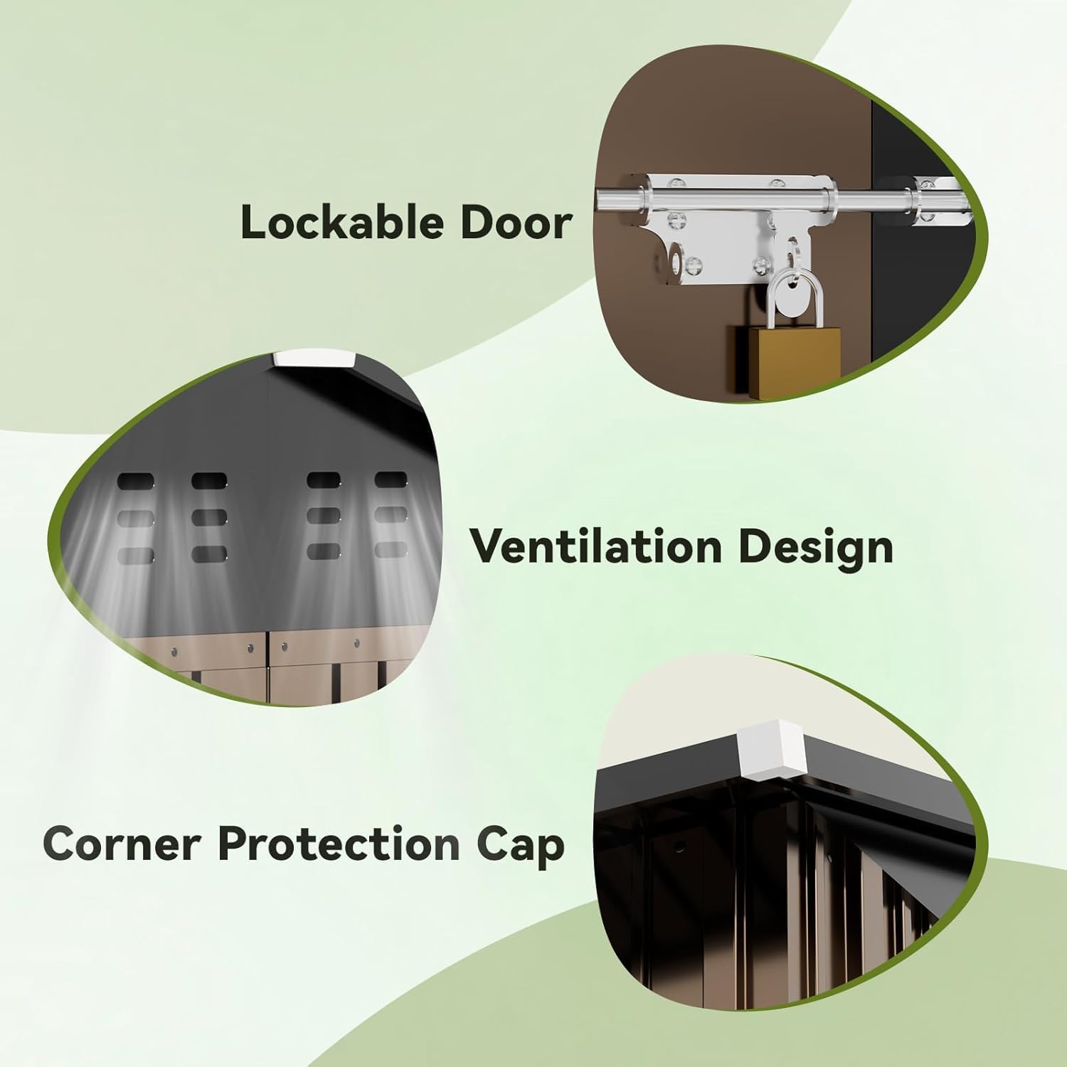 - Lockable Door and Vents:The lockable door provides security,keeps your tools away from being stolen,and avoids small animals from entering accidently;Two Top Vents for Better Airflow,Keeping the Space Cool and Odor-Free
