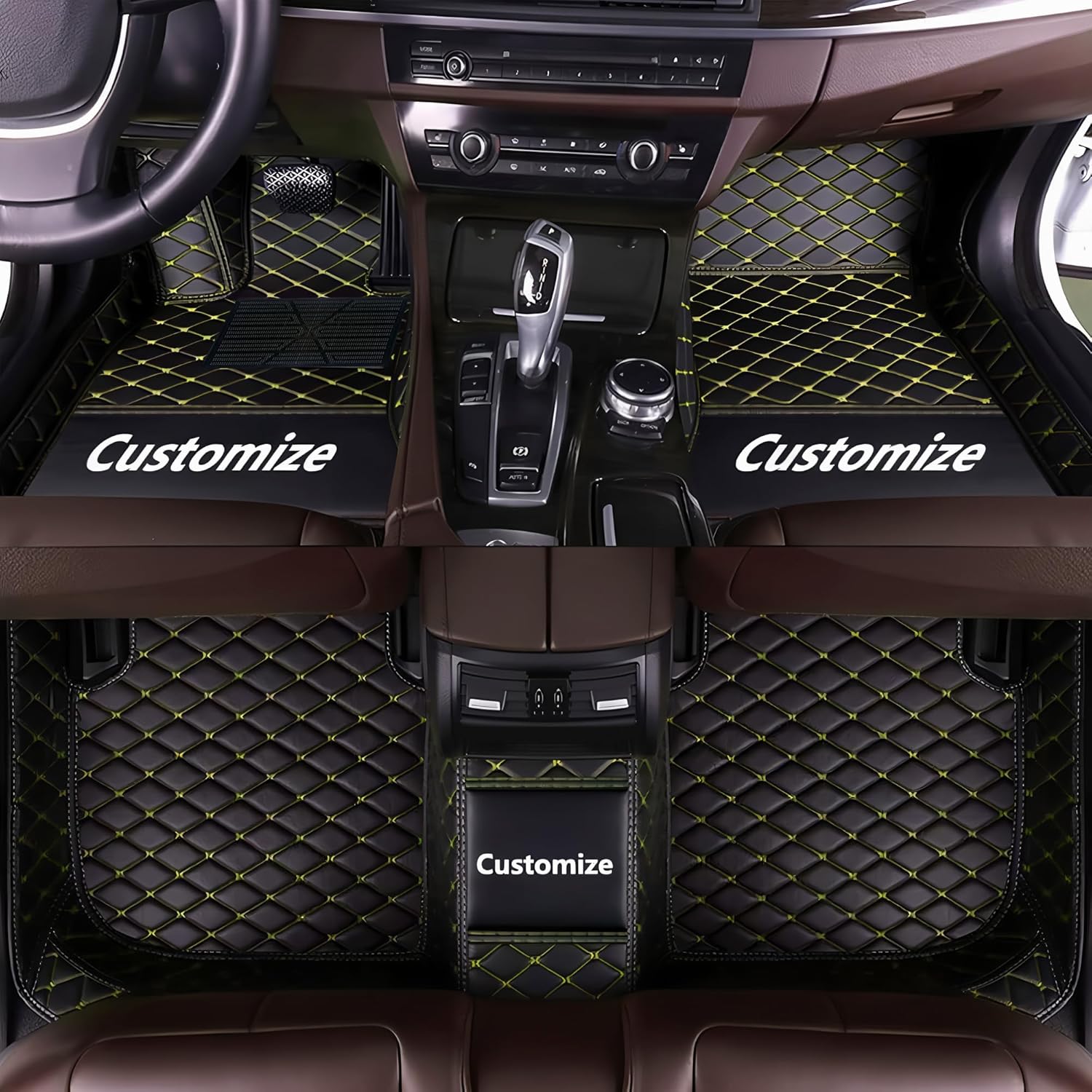 Custom Personalized Floor Mats for Cars,Luxury Full Coverage All Car Floor Mats,Anti-Slip Leather Car Mat Set ,Custom Floor Mats for 99% of Cars, Trucks & SUVs. (Black Yellow)