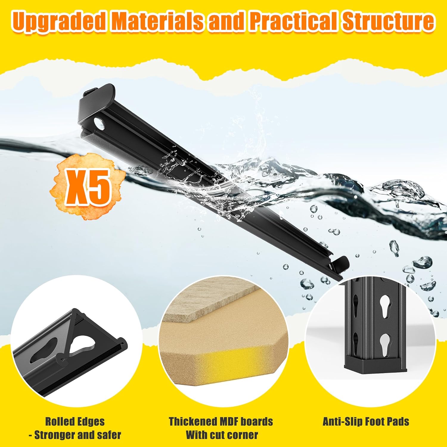 - 【2100LBS Capacity Storage Shelves】Supports 2100LBS total (420LBS per tier) with thickened wooden boards and reinforced metal frame. Reliably holds automotive parts, storage boxes, and heavy equipment