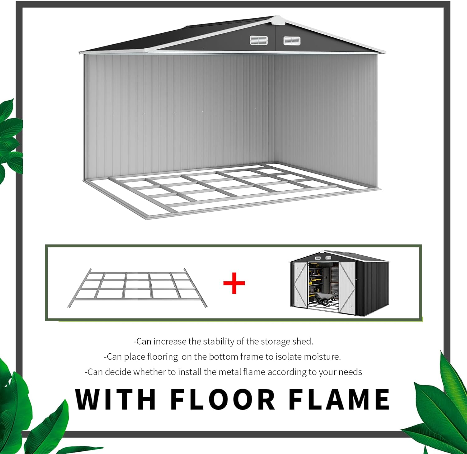- Multiple Storage Modes: The Outdoor storage shed, measuring 7.6 x 9.7 FT, offers ample space for all your outdoor storage requirements. This durable metal garden shed is applicable for storaging accommodate snow blowers, shovels, outdoor chairs, bicycles, and toy cars. Additionally, you can consider purchasing storage racks to optimize the organization of items such as shovels, umbrellas, antennas, escalators and more on this versatile outdoor storage solution