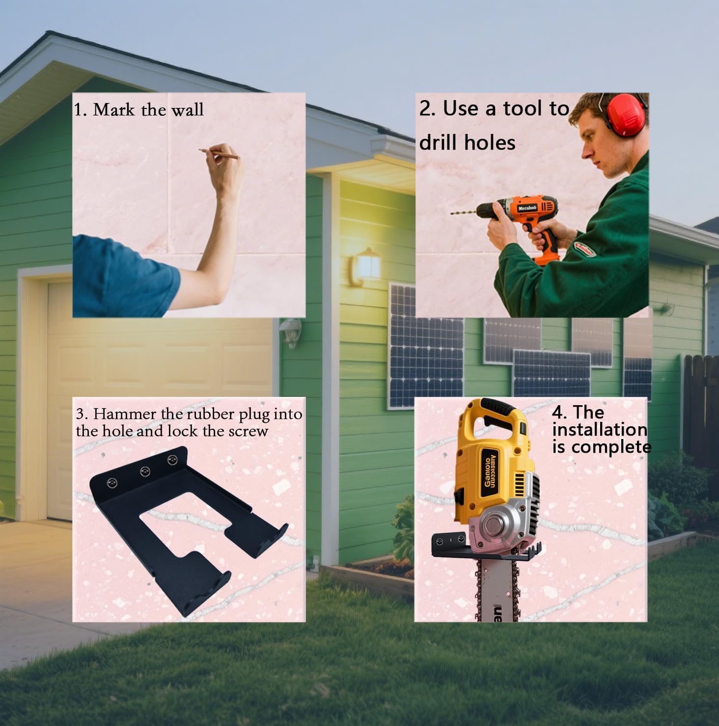 3-Screw Reinforced Weed Eater Hanger, Heavy Duty Steel String Trimmer Rack - Wall Mount Garage Organizer, Garden Tool Holder (5.9x4.9x1.4in) assorted set 2