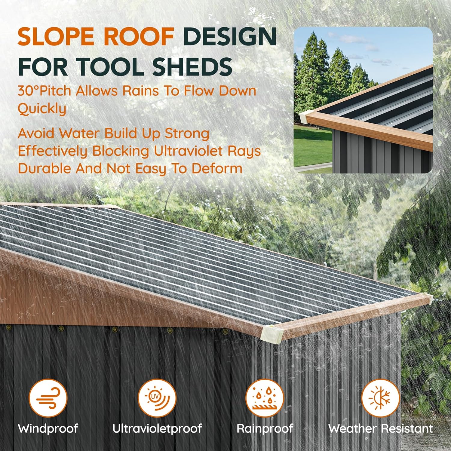 - 【Multi-used Storage Shed】Organize trowels, pruners, and seed packets on optional wall hooks or shelves. Store outdoor cushions, BBQ tools, and seasonal decor securely.Transform it into a cozy outdoor den for your pets. Making the garden shed become ideal for trash cans, recycling bins,or holiday decorations.The outdoor shed is not just storage,it’s a helper for your outdoor needs.