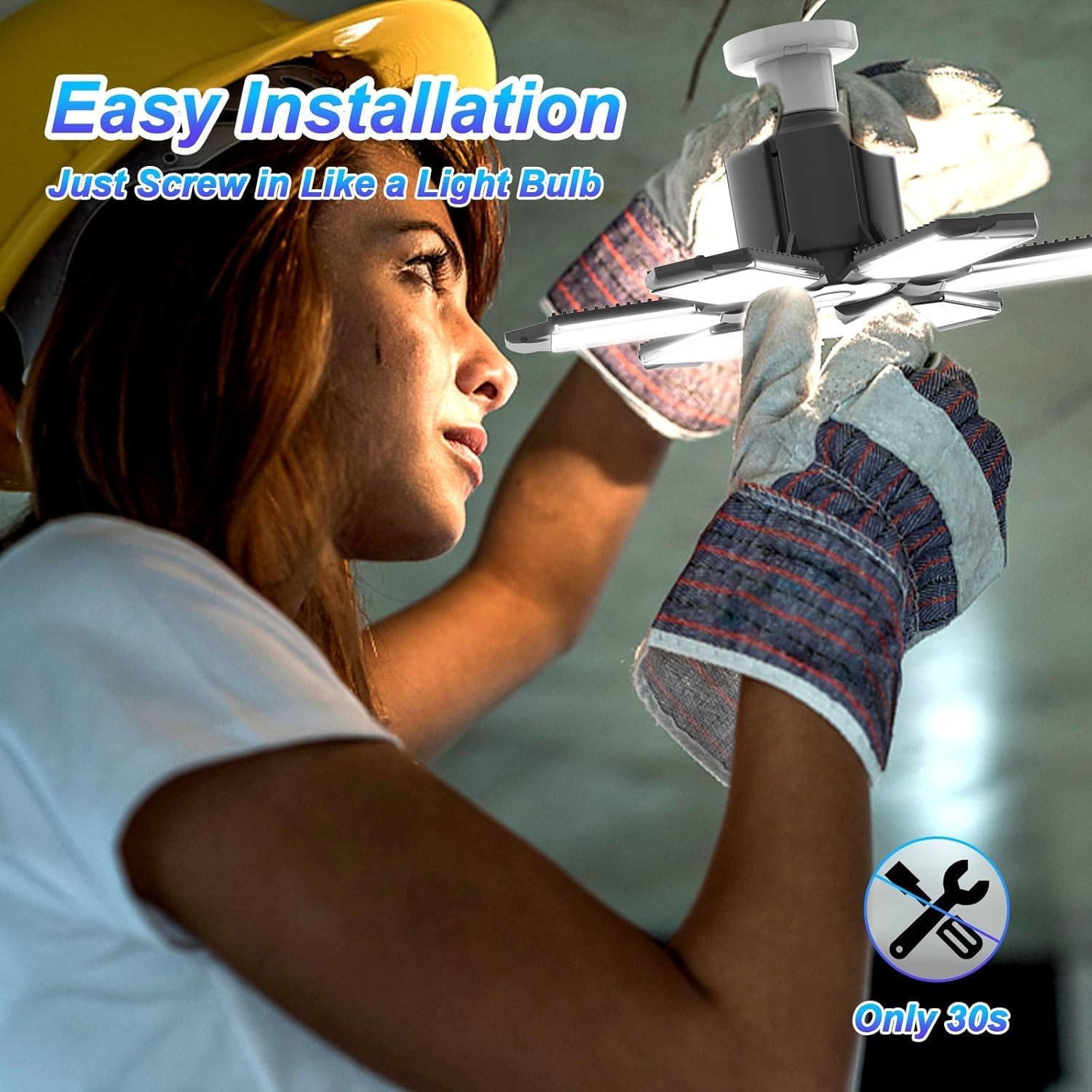 - E26 Bases Included: The LED garage light is compatible with any E26/E27 screw-in socket, no additional wiring is required, and installation is as easy as screwing in a bulb. Eqquorva’s garage lights are produced strictly according to standards.