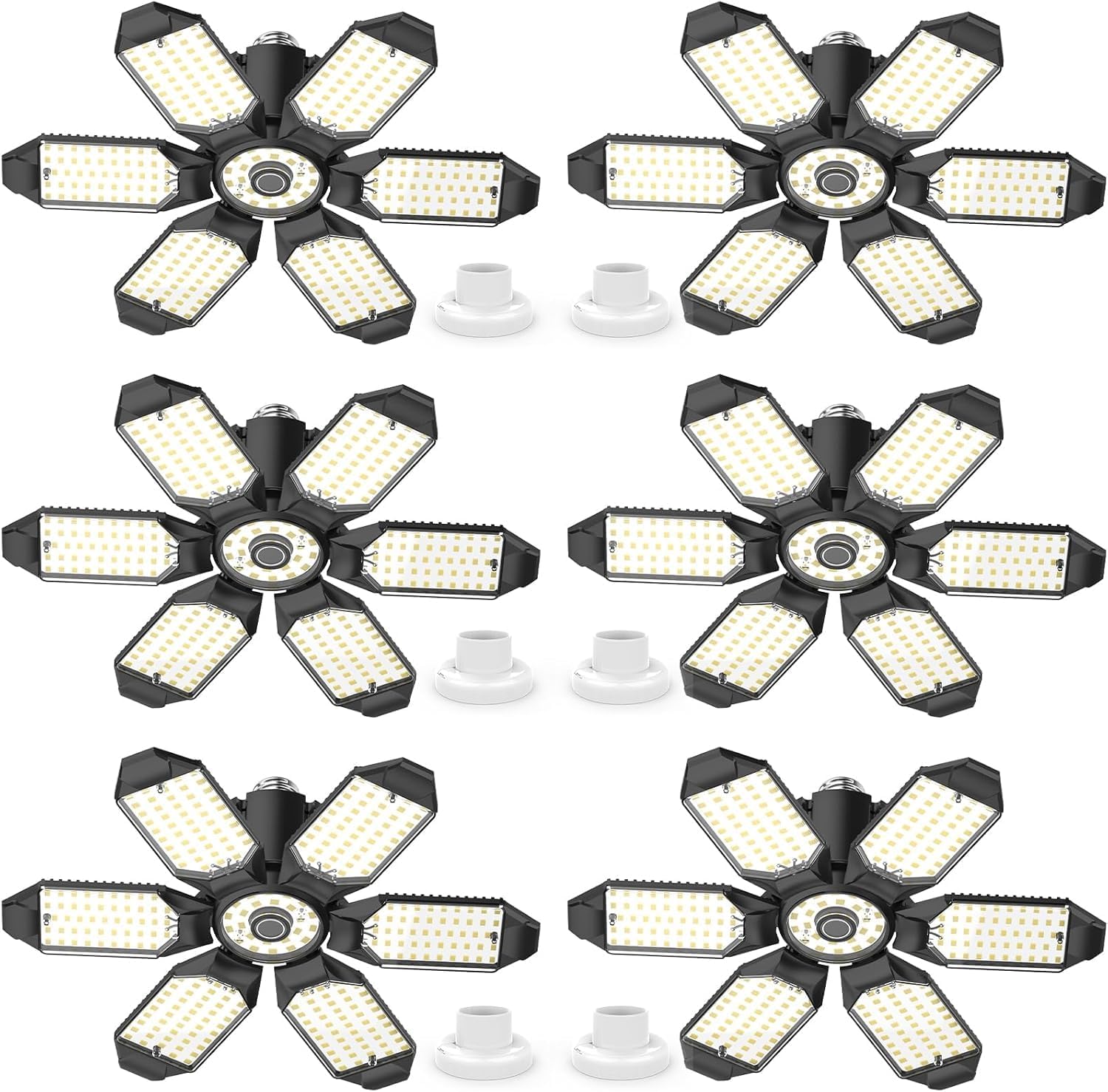 6 Pack 220W Garage Light Ceiling Led Deformable LED Shop Lights for Workshop E26 E27 Screw in Garage