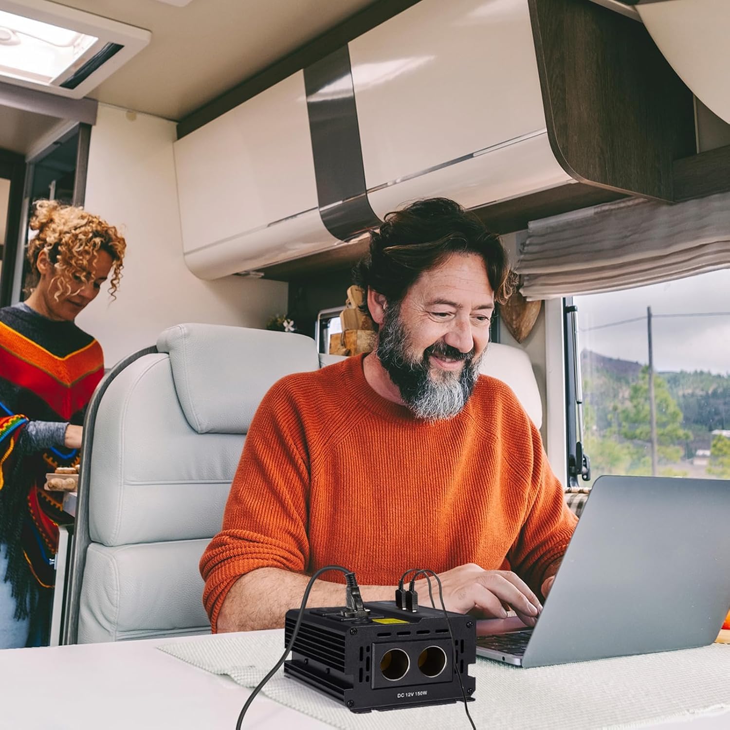 - Versatile and Portable for Any Occasion: Portable for emergency backup power during hurricanes, storms, snowstorms, or power outages, this compact inverter connects directly to a vehicle lighter or 12V battery. It’s ideal for powering electronics, camping lamps and other essential devices. Easy to install and compatible with a wide range of devices, it’s your go-to power solution for extended travel or outdoor adventures