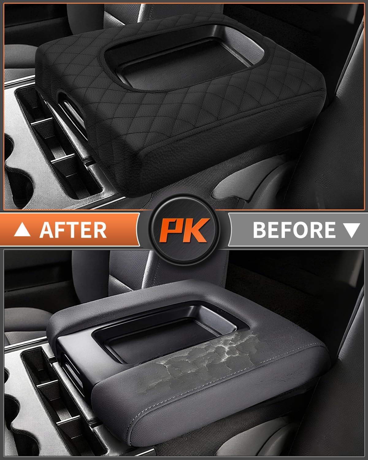 - 【Great Protection for Console】: A must-have Console Cushion for Sierra armrest. The Sierra center console cover gives full protection to your car armrest box from spills, scuffs, dirt, pet claws and sticky fingers. This Silverado console cover can protect the tops and sides of the console and hide the ugly tear in the leather.
