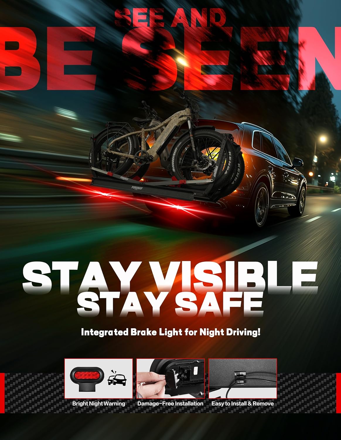 - Perfect Fit for Young Bike Racks:No Guesswork Needed Engineered exclusively for Young racks, this light snaps on in seconds. The low-profile design blends seamlessly with your rack’s frame, while the heavy-duty clamp locks securely—no shaking loose, even on rough terrain.