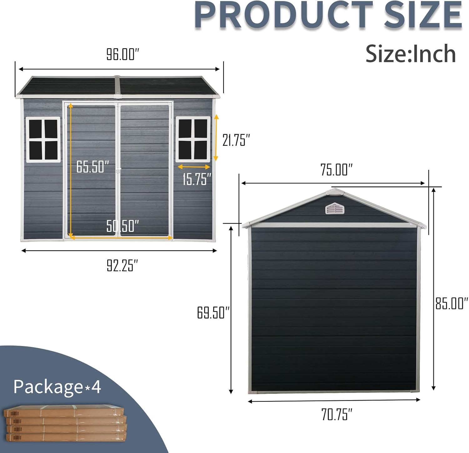 - š ćAll-Weather Resin DurabilityćCrafted from high-quality plastic resin, this resin shed is built to handle rain, snow, and sunlight with ease. The waterproof and UV-resistant exterior helps protect your stored items all year long, while the reinforced double-wall panels add strength and thermal stability for lasting outdoor performance
