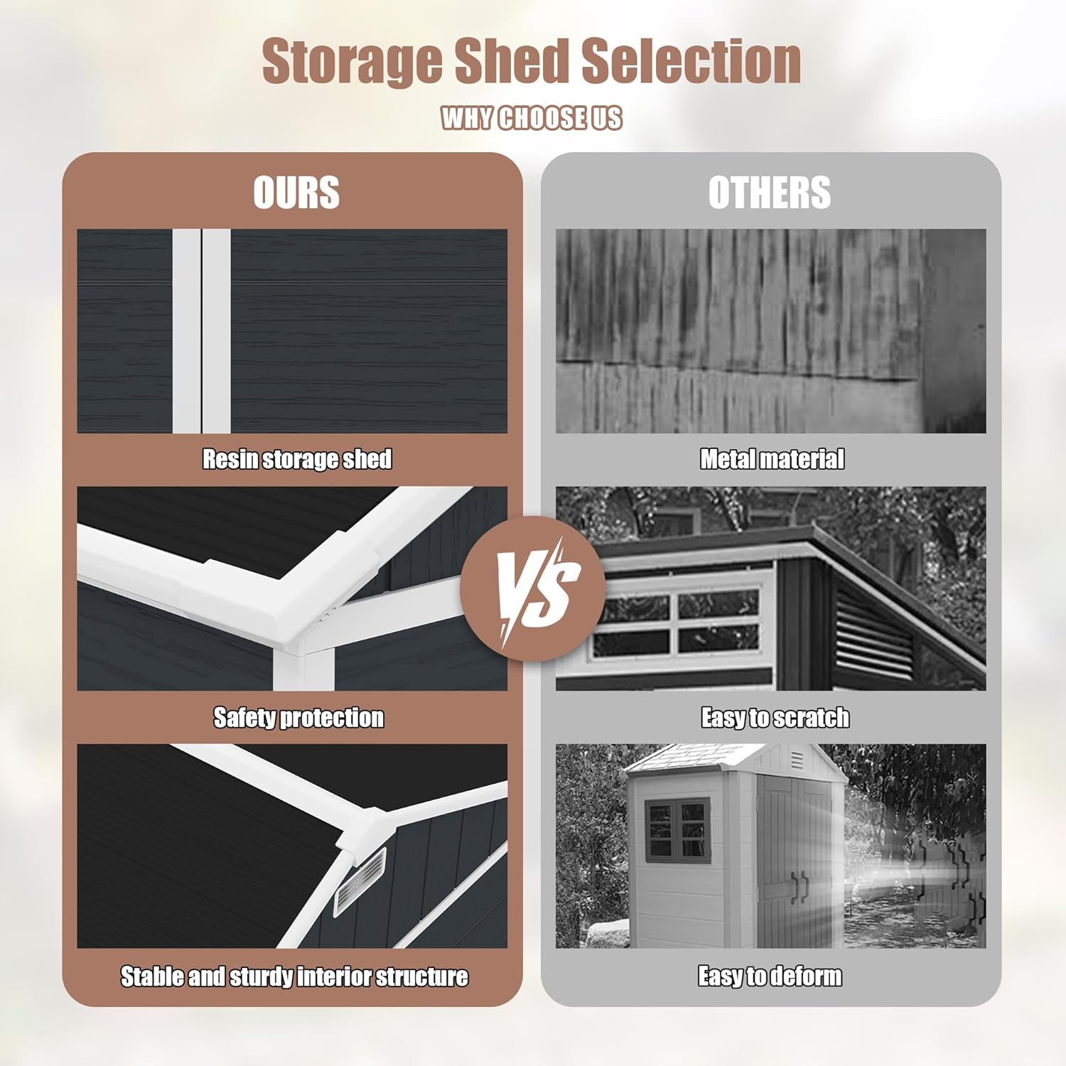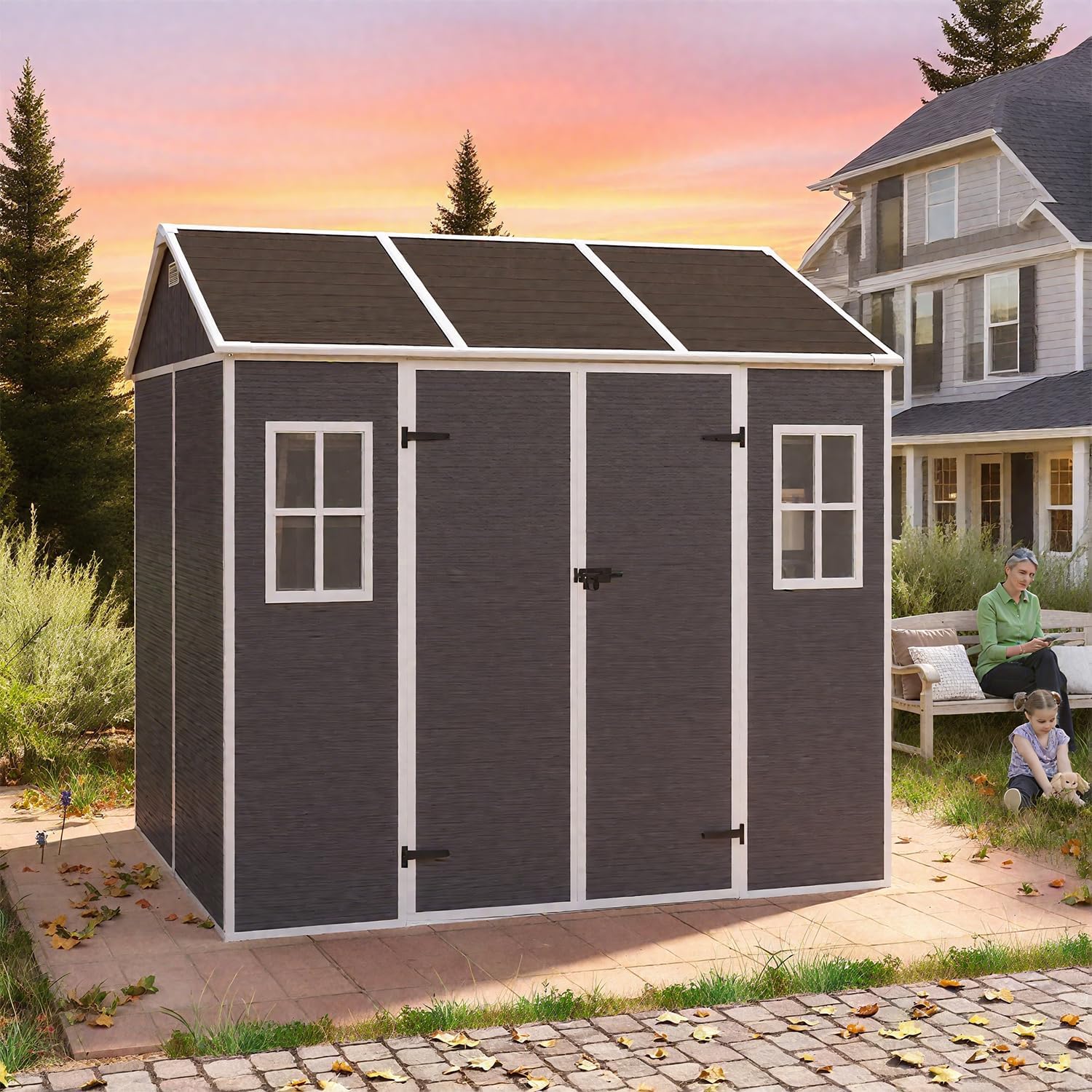 - 🏠 【All-Weather Resin Durability】Crafted from high-quality plastic resin, this resin shed is built to handle rain, snow, and sunlight with ease. The waterproof and UV-resistant exterior helps protect your stored items all year long, while the reinforced double-wall panels add strength and thermal stability for lasting outdoor performance
