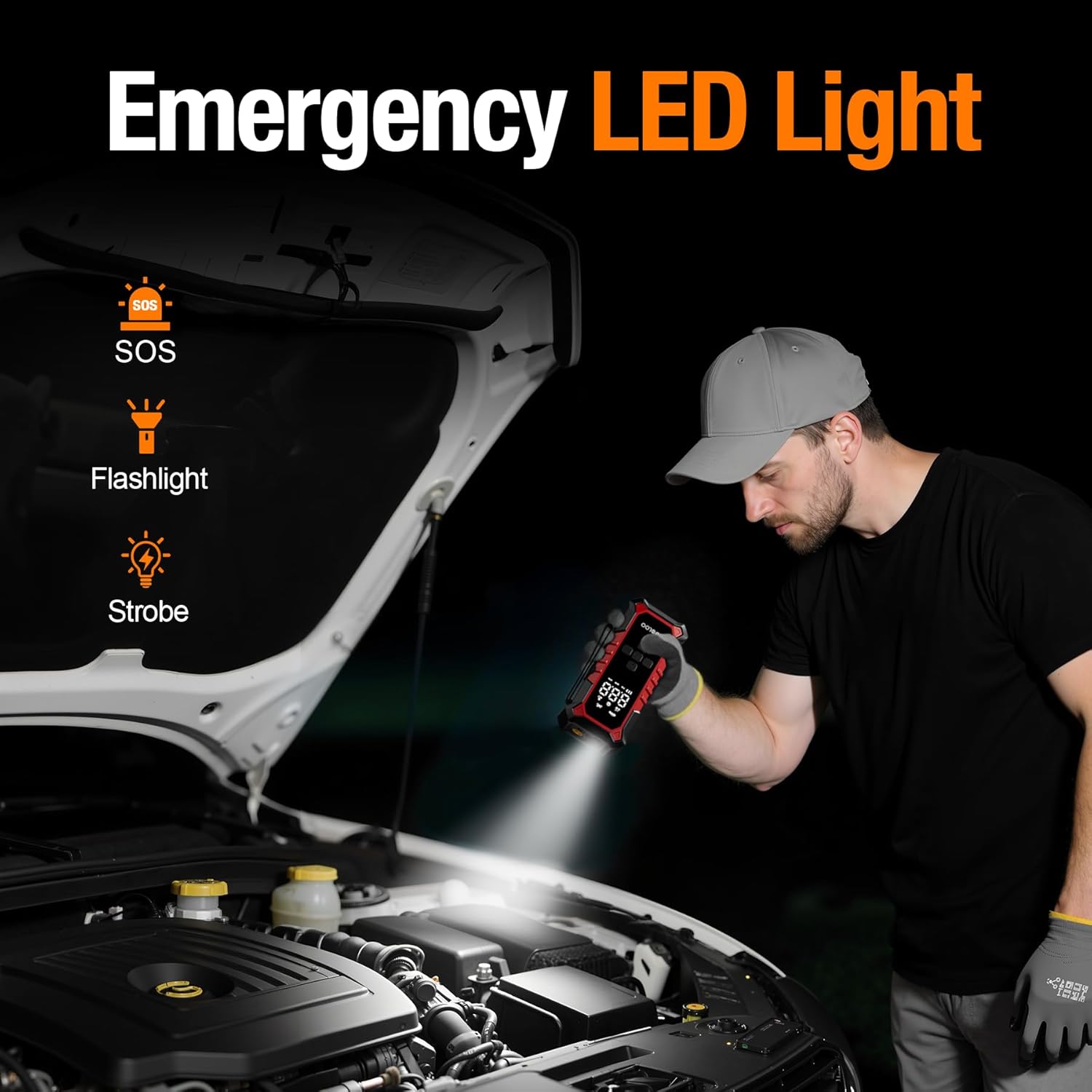 - MULTI-FUNCTION EMERGENCY LIGHT & LED DISPLAY: GOOLOO A6 Gear works as both an inflator and an emergency tool. This battery powered tire inflator features an ultra-bright LED flashlight with multiple modes (steady, SOS, and strobe), providing nighttime illumination for safe operation. And its large-font LED display ensures clear pressure readings even in bright sunlight.