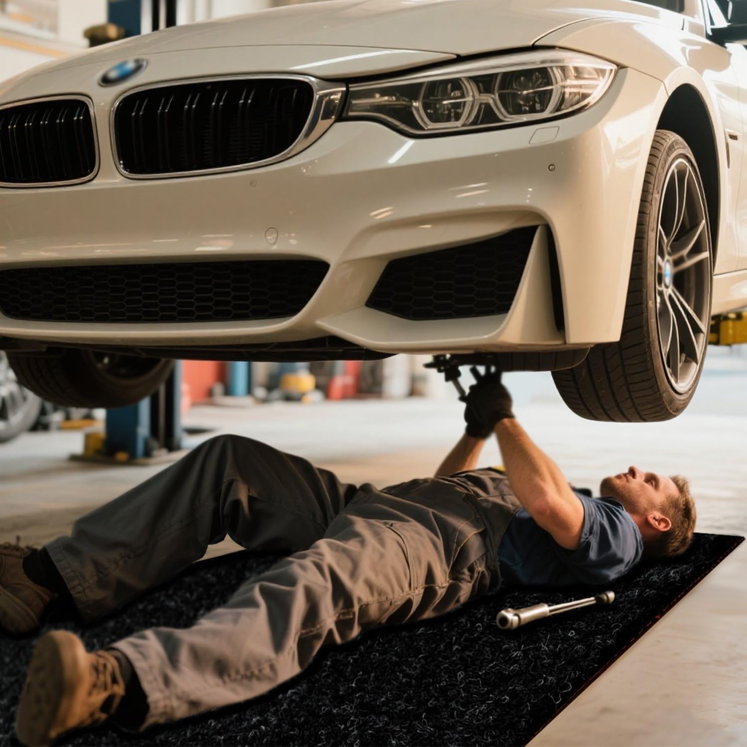 - ♻️【SOFT, COMFORTABLE & REUSABLE】: Provides a comfortable surface to lay down on when changing or sharpening mower blades and is easy on the knees when changing oil or filters, or doing other maintenance work. Simply wash for multiple uses, saving cost over disposable mats