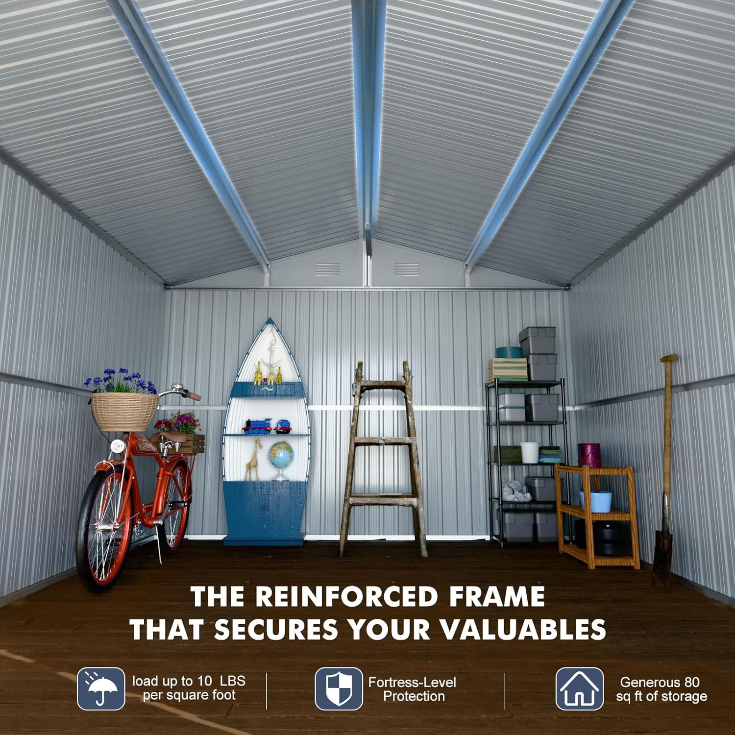 Metal Shed 8x10 FT - Steel Tool Storage with Sliding Door & Vents - Outdoor Bike Sheds for Garden, Backyard, Patio - Utility Storage Solution
