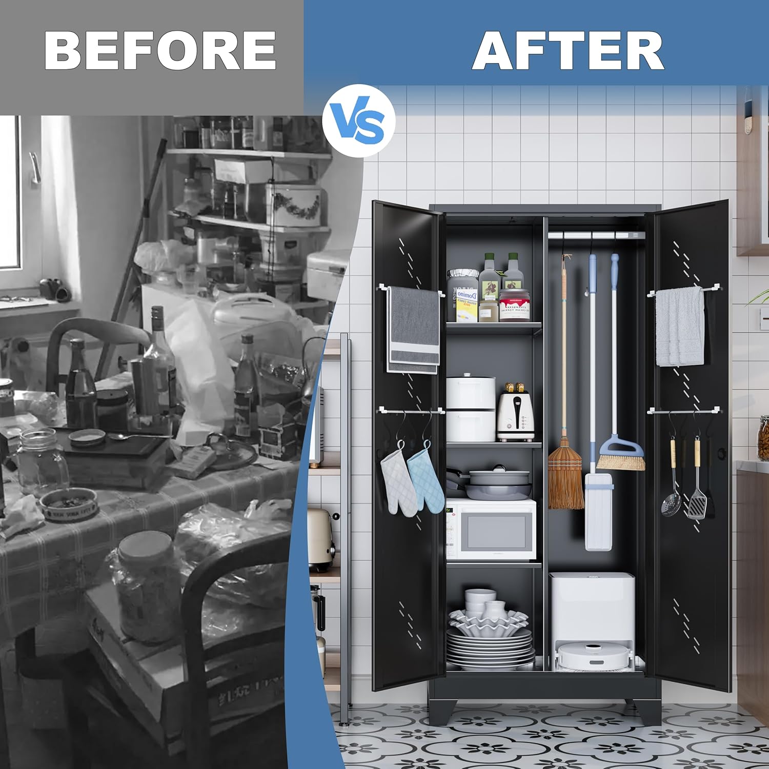 - Easy to Assemble: The cleaning supply storage cabinet comes with detailed instructions and installation videos to help you complete the assembly more easily. Besides, our customer support is here to help with any questions or assistance