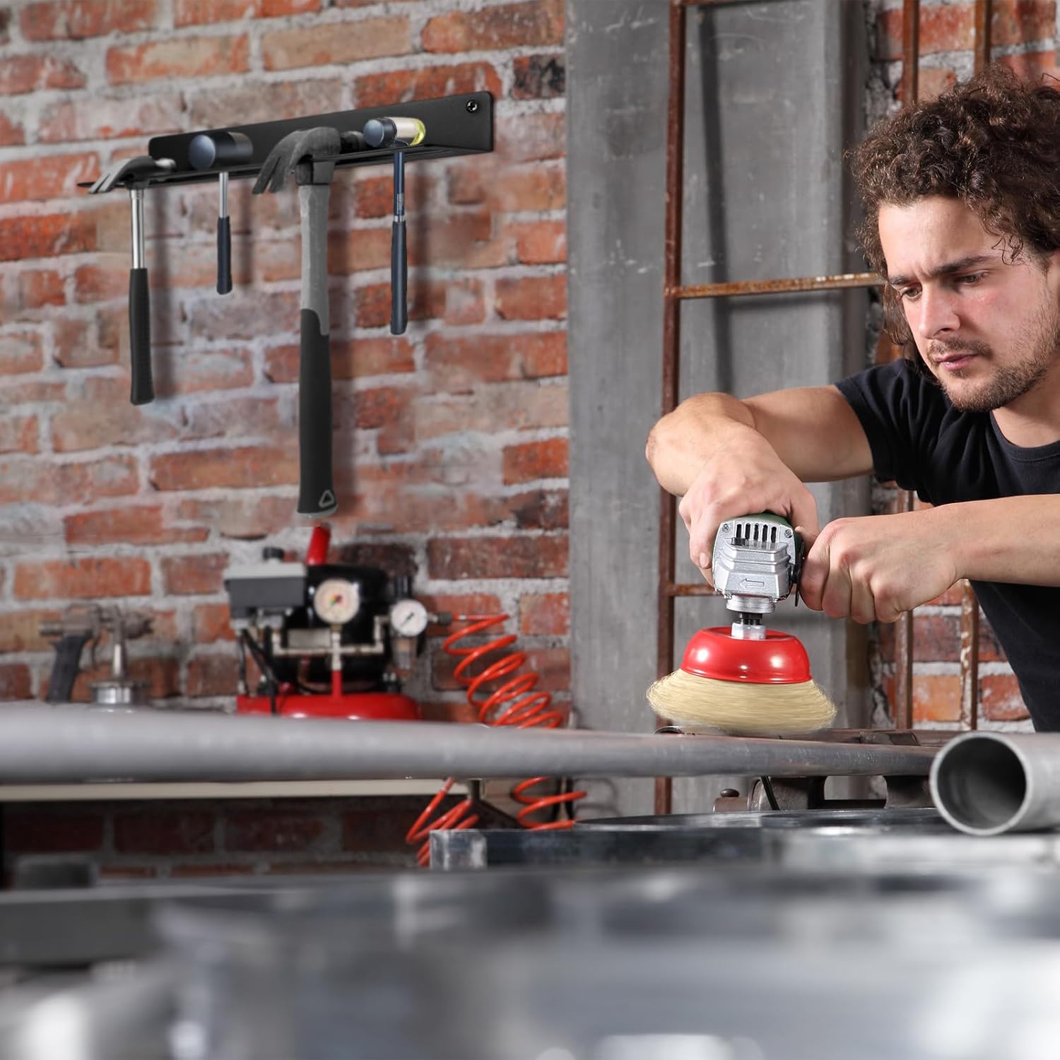- 2 Set: you will get 2 pcs metal hammer holder, Whether you want to place them side by side in your garage or in different areas of your workshop, these two racks offer ample space to organize your hammers and other hand tools