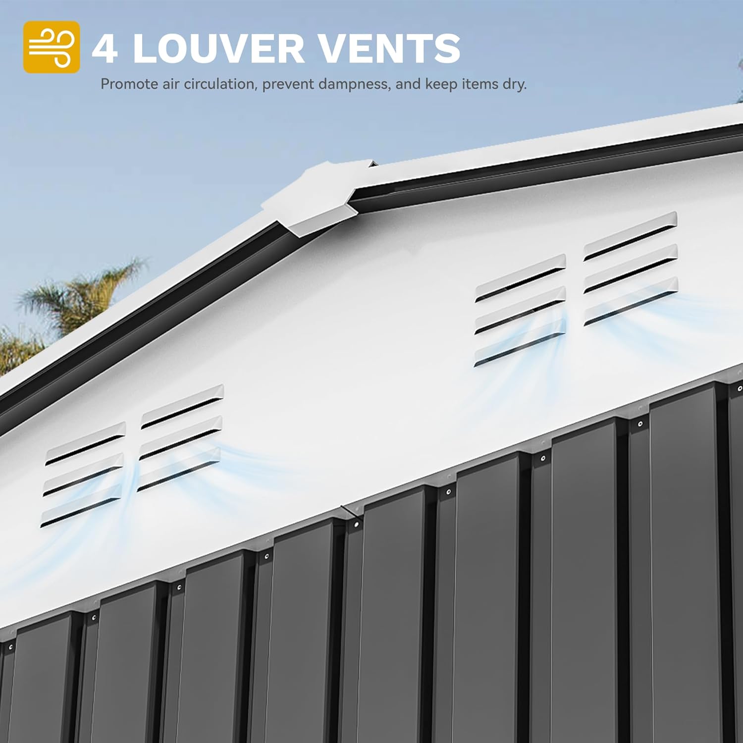 DWVO 8' x 6' Outdoor Storage Shed, Waterproof Metal Garden Shed with Windows, Lockable Doors, and Sloped Roof for Patio, Backyard, Lawn, Tool Storage, Bike Shed, Pet Shelter (Gray + White)