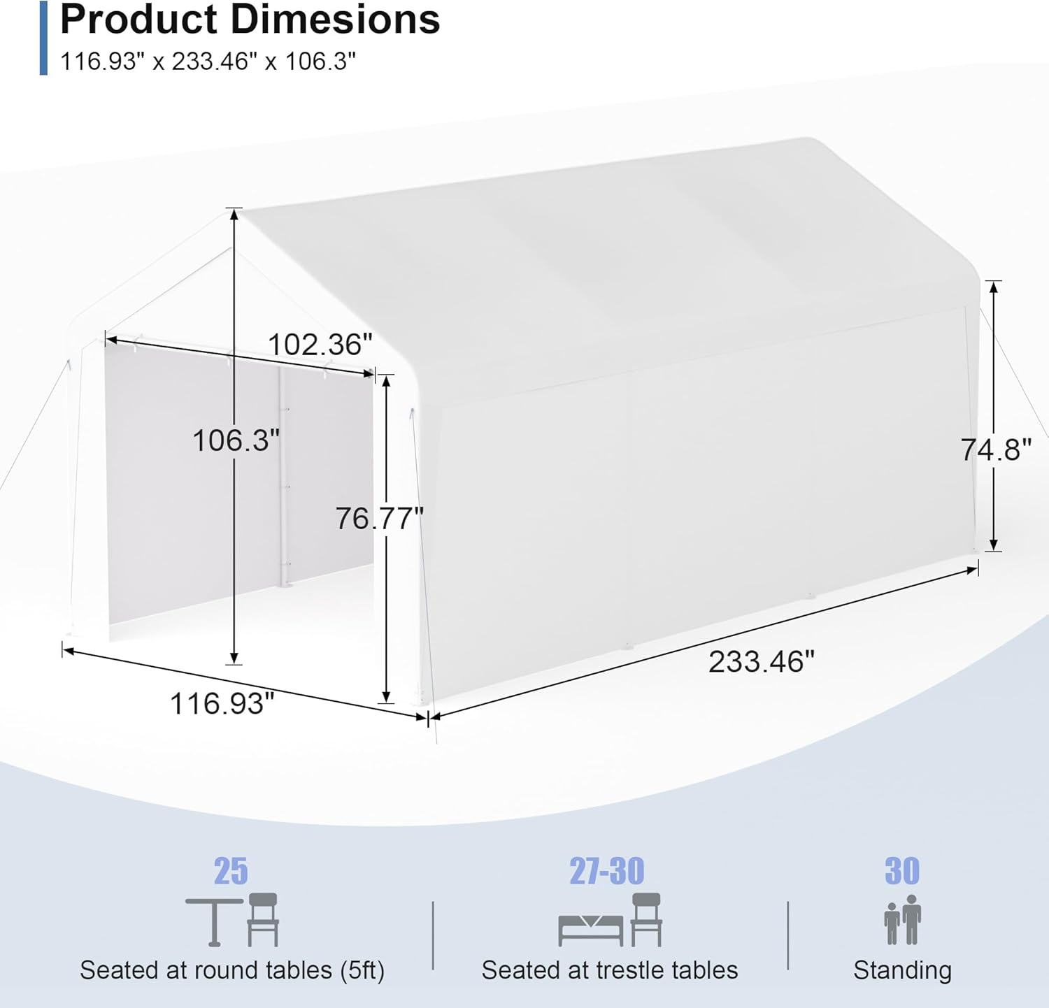 - Product Dimensions : 233.46"L x 116.93"W x 106.3"H