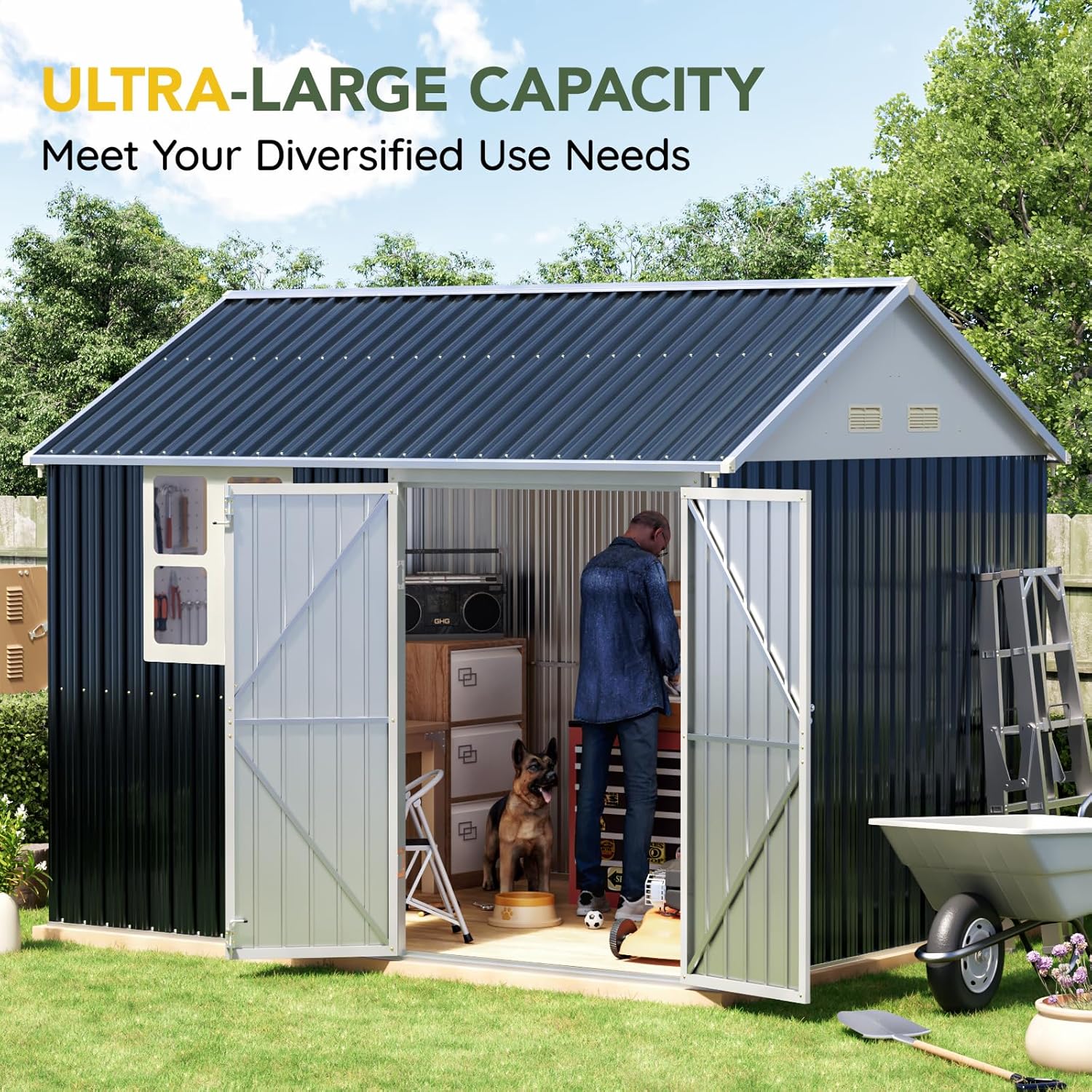 Breezz 8X10FT Outdoor Steel Storage Shed with Clear Window, Lockable Doors, Weather-Resistant Metal Tool Shed for Garden, Backyard, Patio, and Utility Storage.Nightblue