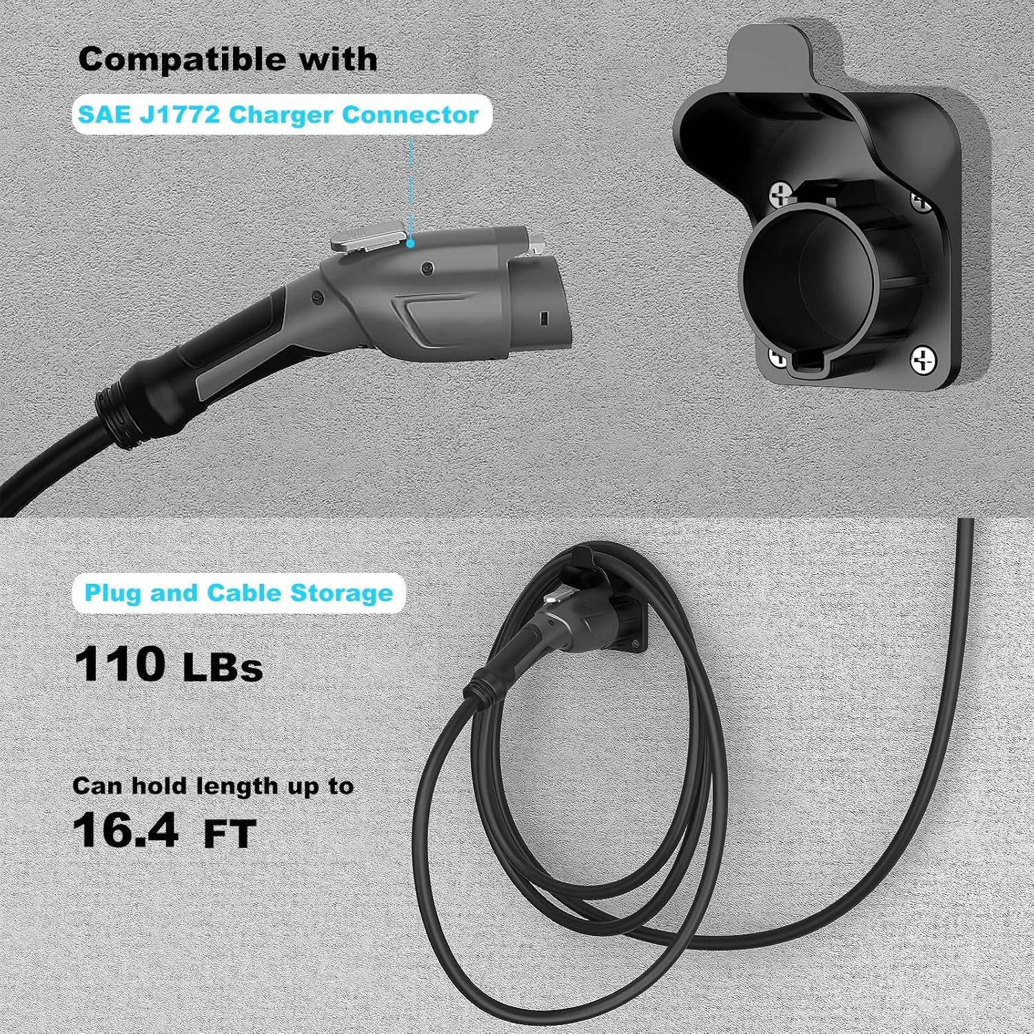 - Compatible with J1772 Plug: This EV charger holder fit for SAE J1772 charger connectors and charging cable organizer saving space at charging stations.