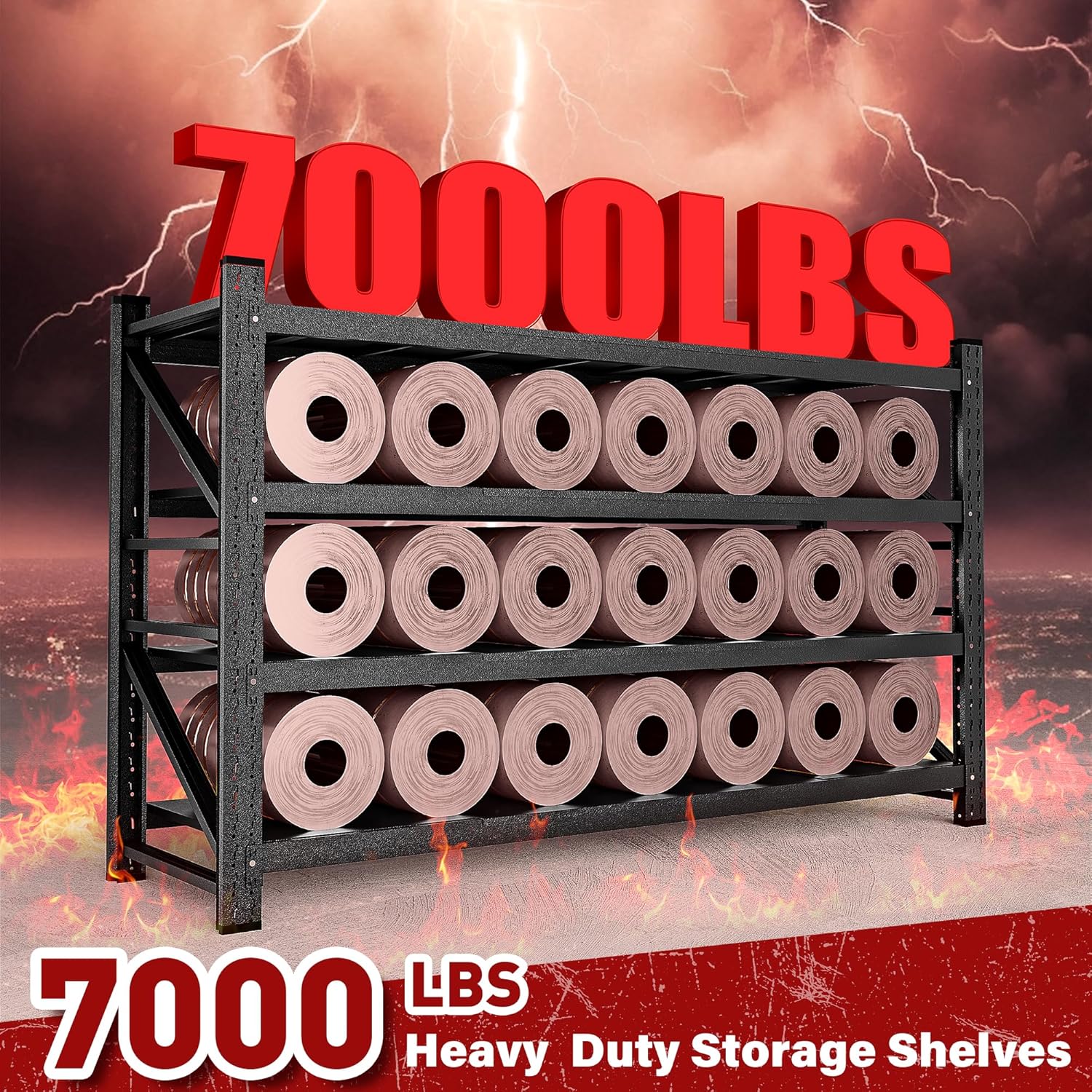 - 【WIDER & THICKER Uprights and Beams than standard】 Garage Shelves Heavy Duty use one-piece upright construction,which is not only enhances the overall strength but also allows for a higher load - bearing capacity.The reinforced beams can effortlessly bear substantial loads, ensuring the garage shelving units remains steadfast even under heavy usage.Enabling the metal shelf to support a total weight of up to 7000 pounds.