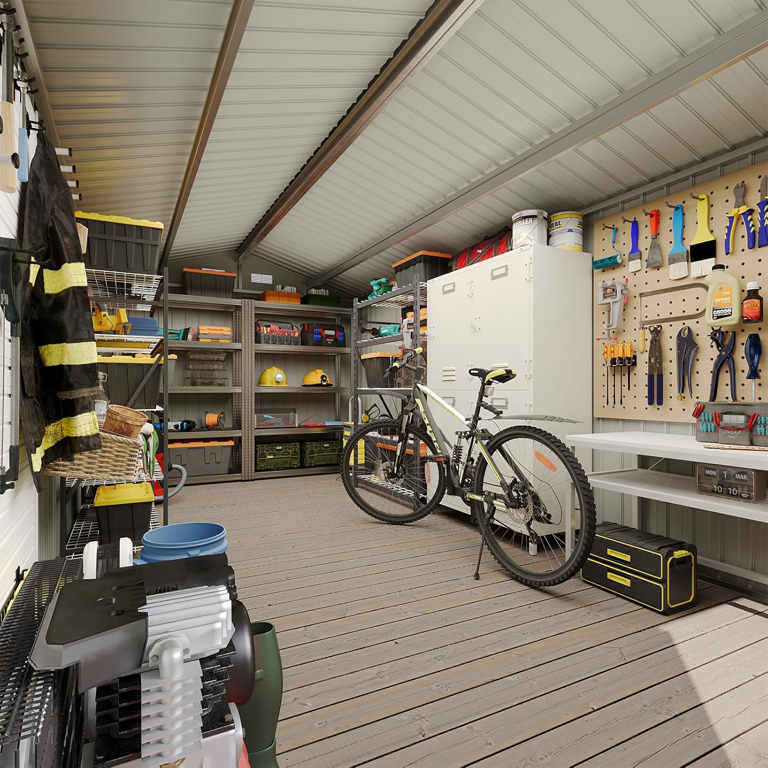 - Ample Spaciousness & Smart Organization: Generously sized to effortlessly store shovels, rakes, bicycles, bulky lawnmowers, children's toys, sports equipment, and all your outdoor essentials. Features optional internal storage racks (not included) to maximize vertical space and keep your belongings neatly organized and instantly accessible.