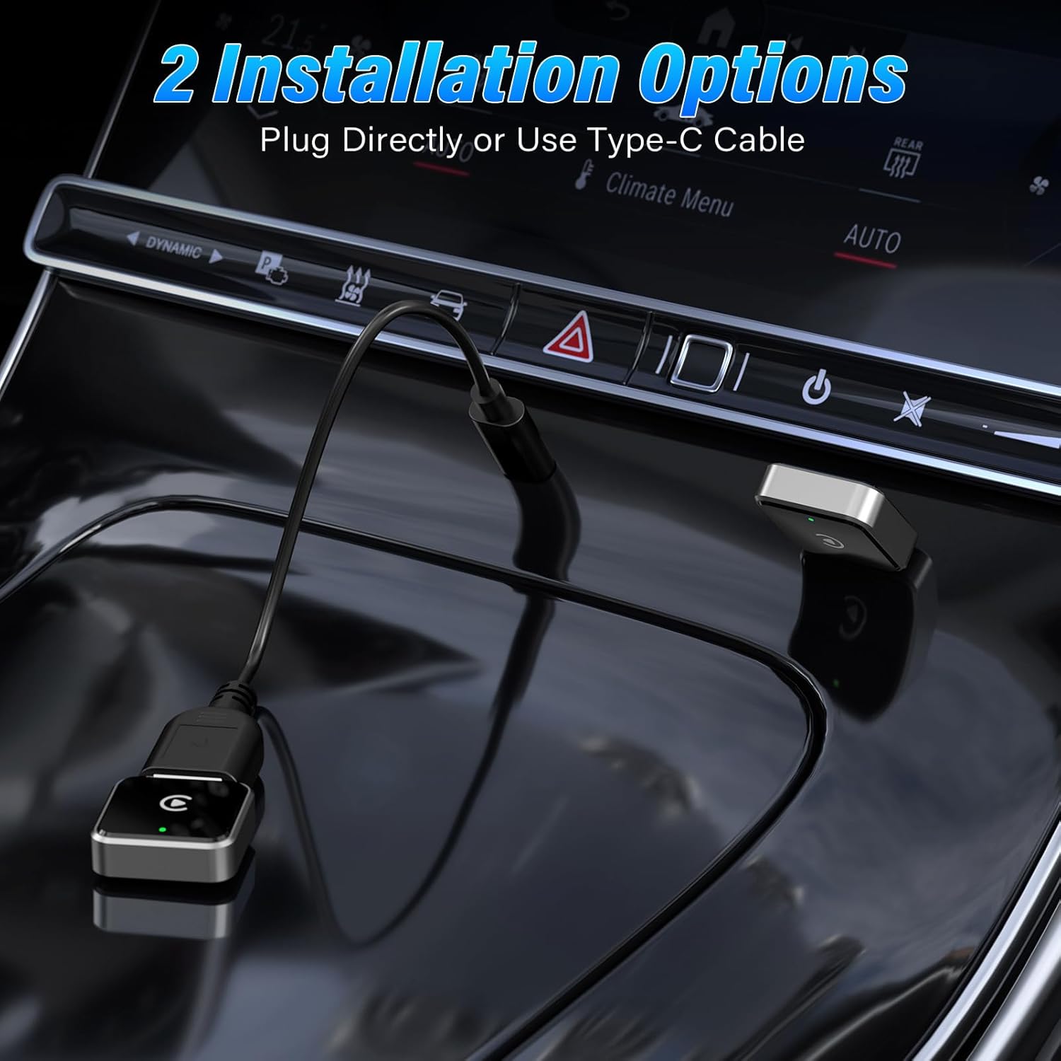 - Plug and Play: No additional drivers are required, plug and play. Plug the Type-C end of the cable into the CarPlay Car Adapter and the other end into the car's CarPlay to enable. Every time you start the car, the CarPlay wireless connection will be automatically activated without repeated operations, bringing you a truly easy smart driving experience. Please make sure that Bluetooth and Wi-Fi are enabled on your phone