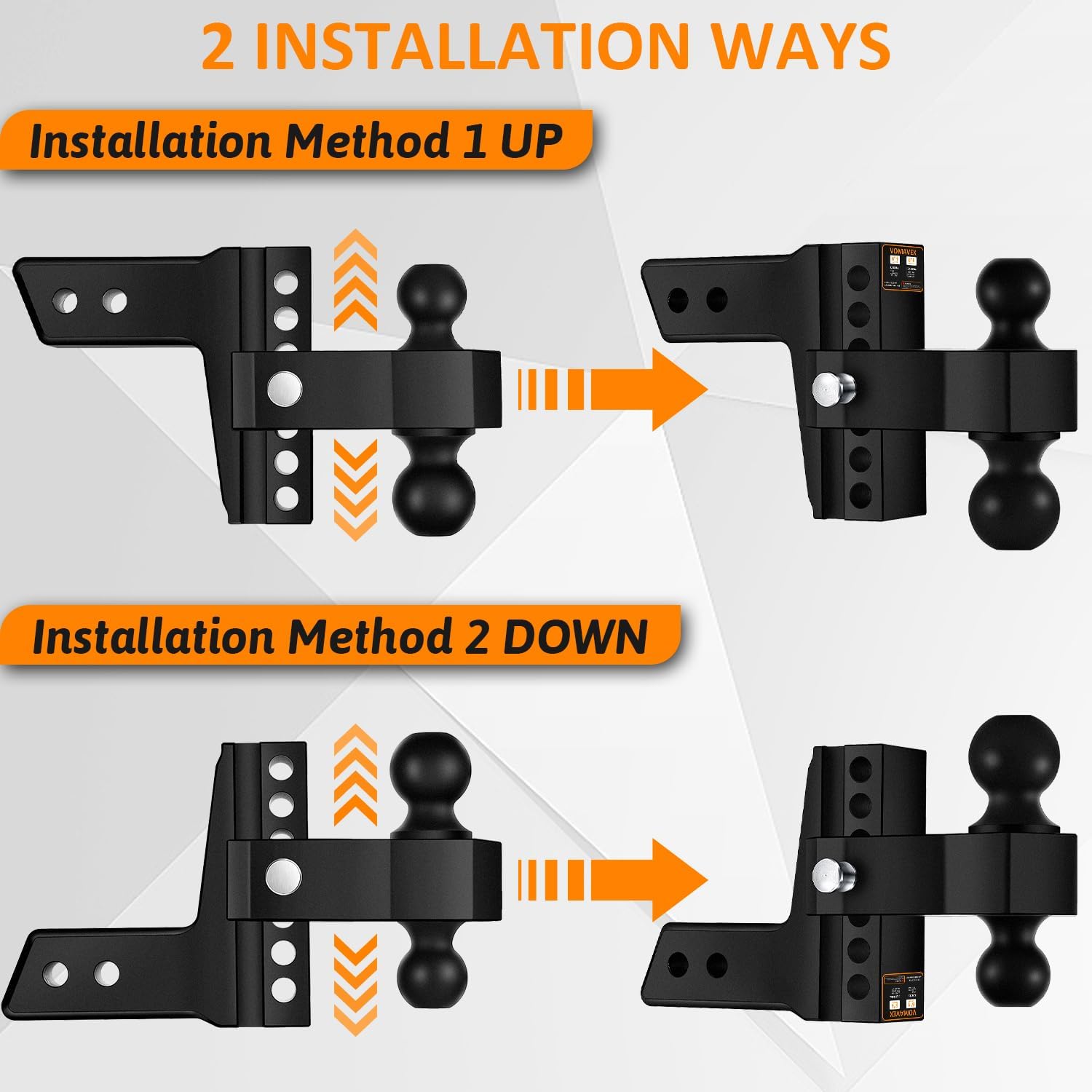 - 【FITS 2.5” RECEIVER ONLY, VERSATIBLE COMPATIBILITY】 - Vomavex Adjustable Trailer Fitch Fits 2.5-Inch Receiver Effortlessly Fits a wide arrange of connectors including Trucks, RVS, Farm Trailers, Cargo Trailer, Live stock trailer, Campers and even off-road vehicles like ATVS and Motorcycles. So whether you are towing a small utility trailer or a heavy duty camper, this hitch will never let you down.