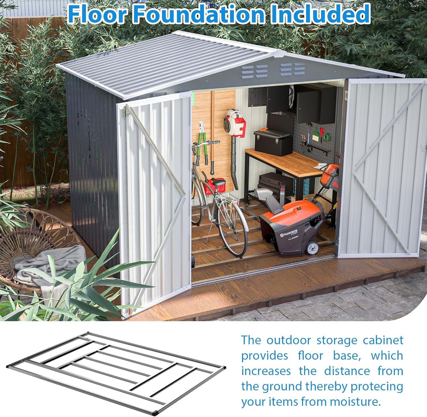 - 【Reinforced Steel Construction】 Built with galvanized steel panels and aluminum frame reinforcements, this storage shed offers exceptional strength, rust resistance, and stability that lasts over 10 years in all weather conditions.