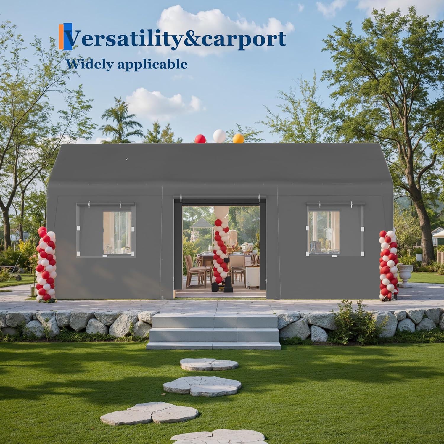 - 【Upgraded Carport】We added a rear door and 4 windows to the original, which can better promote the ventilation of the carport. 13'x20' size can also be used for family gatherings, parties and other events, with plenty of space.