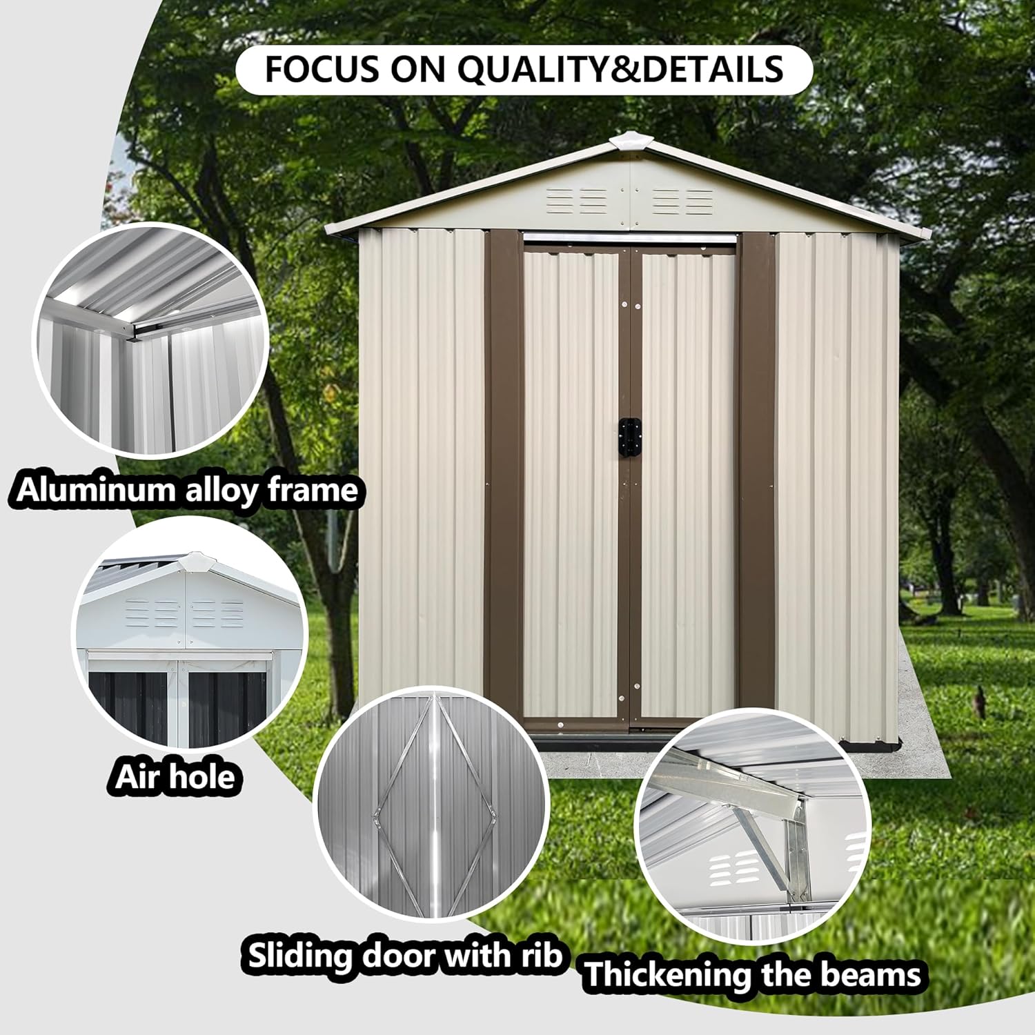 - Heavy Duty Metal Material - The tool storage house has a sturdy structure built with galvanized steel and aluminum alloy frame for long term strength and durability, suitable for all climates, no need to worry about metal rusting, fire, rot and termites, excellent moisture resistance.