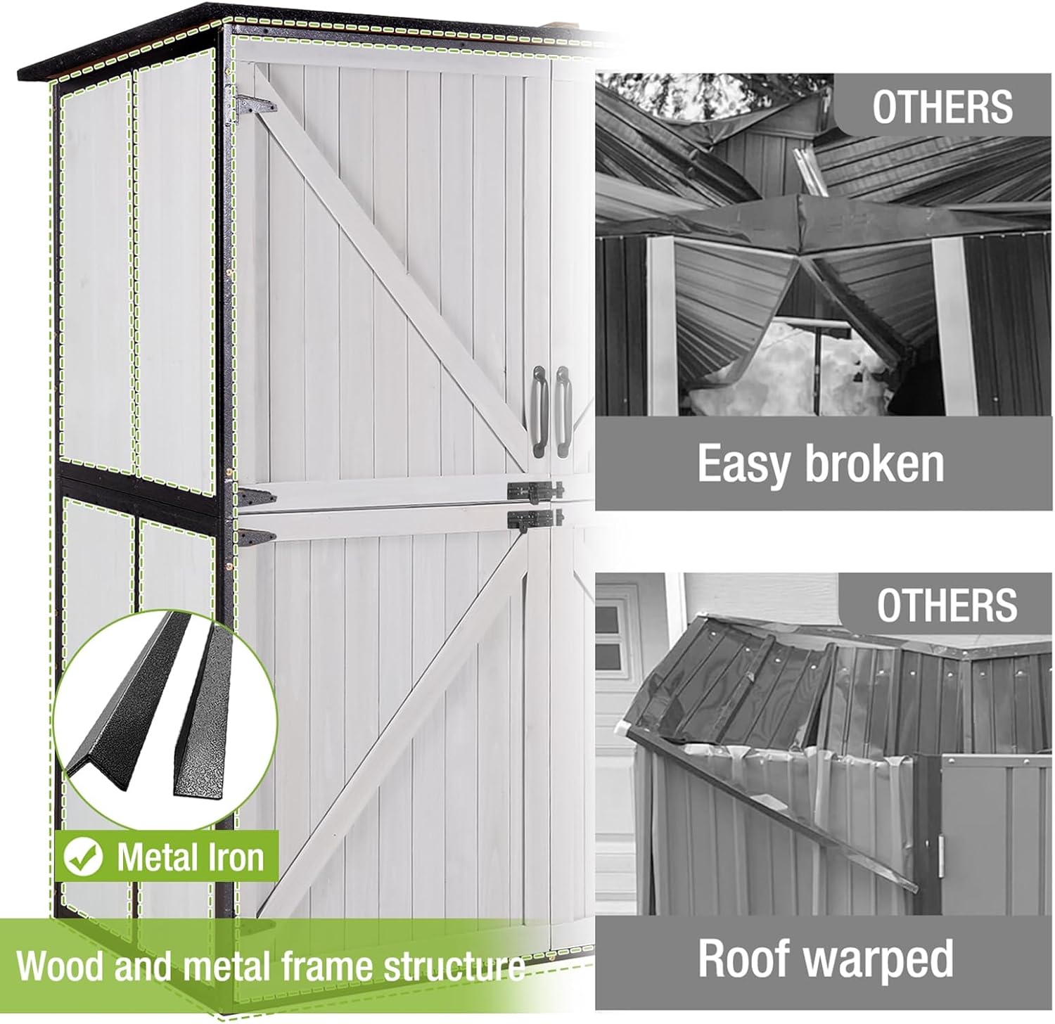 - 【Durable Structure】This storage shed is made of a sturdy metal frame that can withstand the elements.Its sturdy construction and weather-resistant materials keep your items safe!