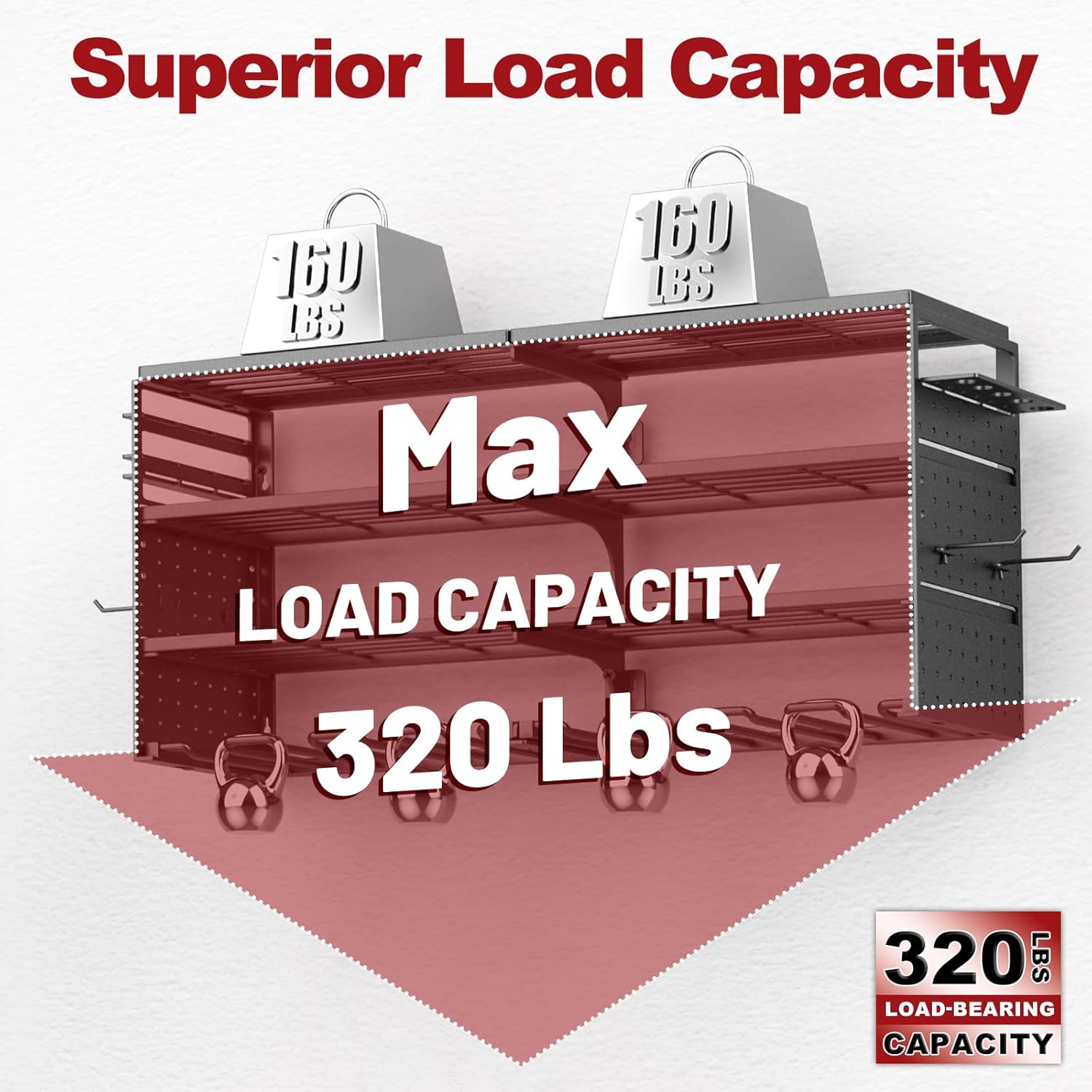 - Versatile Side Pegboards:The side-mounted pegboard provides extra space for hanging smaller tools and accessories for DIY customization to increase storage space, enhancing organization and keeping frequently used items within arm's reach