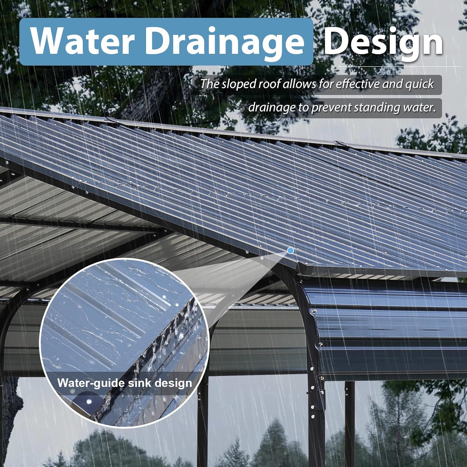 - Sturdy Galvanized Frame: Made of high-quality galvanized metal, this durable outdoor carport features a sturdy steel frame with a triangular support beam on the top and an extended side panel design, which improves the overall stability and greatly enhances its ability to withstand strong winds and heavy snow.