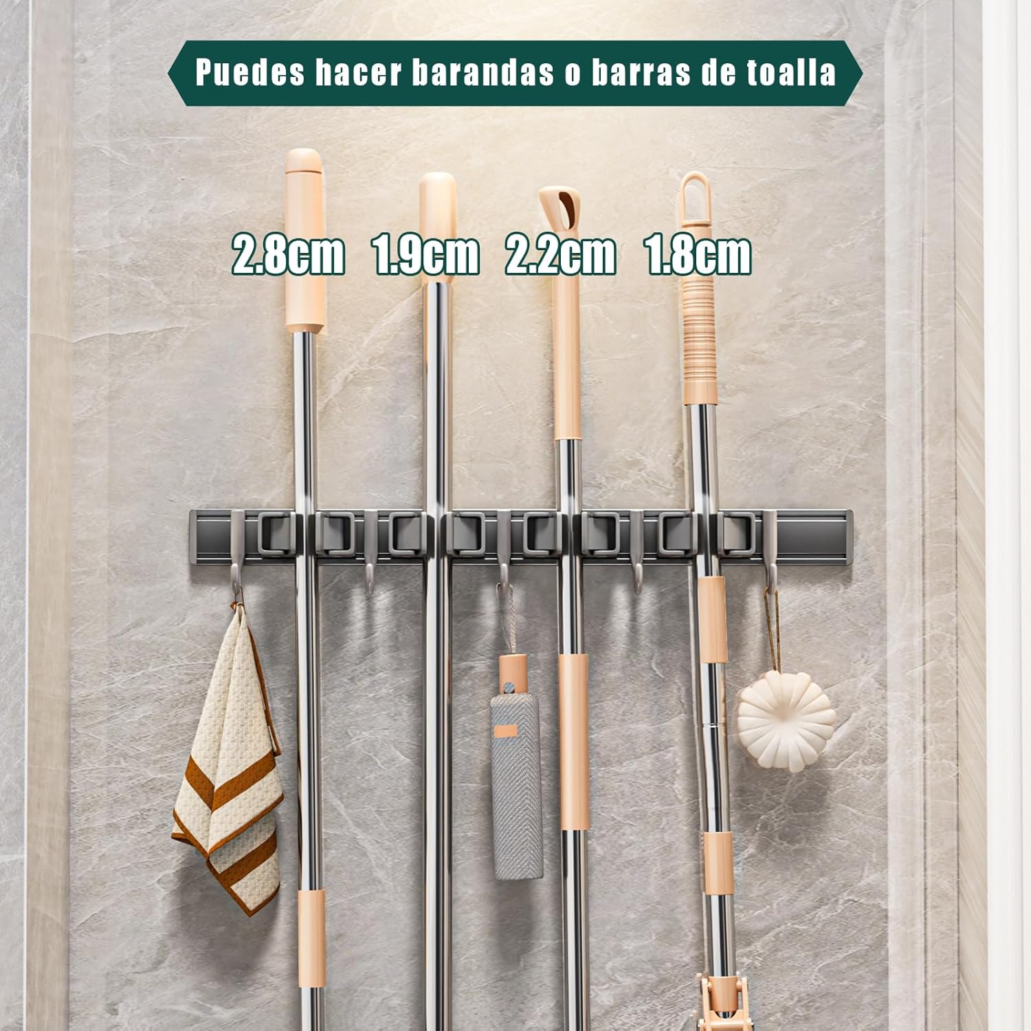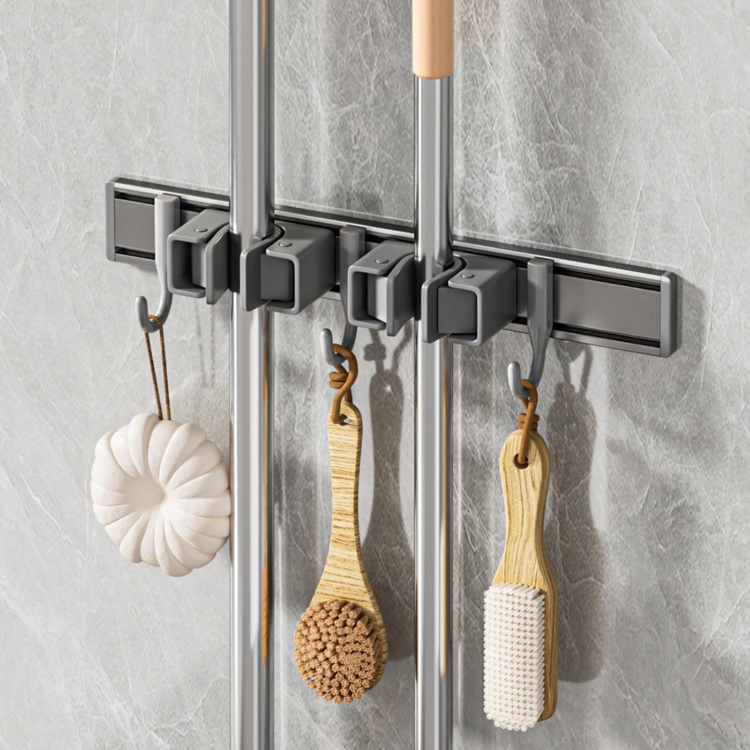 - 【Full wrap in rubber】Our broom and mop organizer wall hanging can store mops and brooms of many diameters. The non-slip rubber firmly wraps the mop and broom, protecting your tools from scratches while preventing them from falling.
