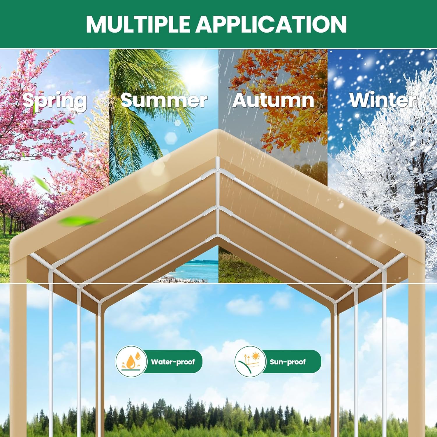 COBIZI Carport Canopy 12x20 Heavy Duty Car Tent Garage, Galvanized Frame Car Canopy Outdoor Shelter Waterproof & UV Protected with Built-in Sandbags & All-Season Tarp for Car Boat Truck, Khaki