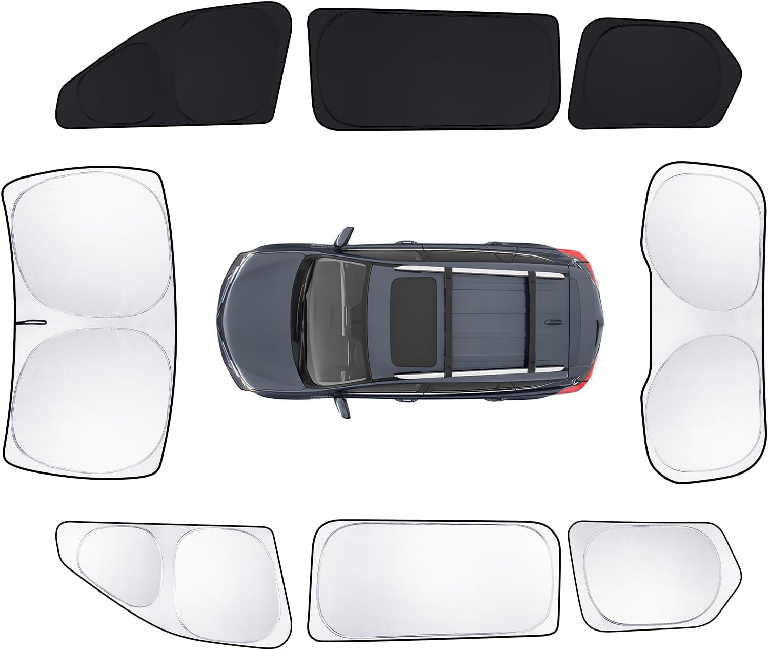 - All-new upgrade: Each sun visor is covered with a silver metal aluminum layer on the outside and black on the inside. Compared with the all-black sun visor, the silver sun visor can better lower the temperature inside the car. Meanwhile, when you need to use the black sun visor, just flip it over for use