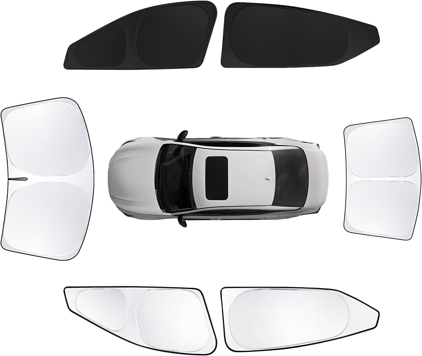 - All-new upgrade: Each sun visor is covered with a silver metal aluminum layer on the outside and black on the inside. Compared with the all-black sun visor, the silver sun visor can better lower the temperature inside the car. Meanwhile, when you need to use the black sun visor, just flip it over for use
